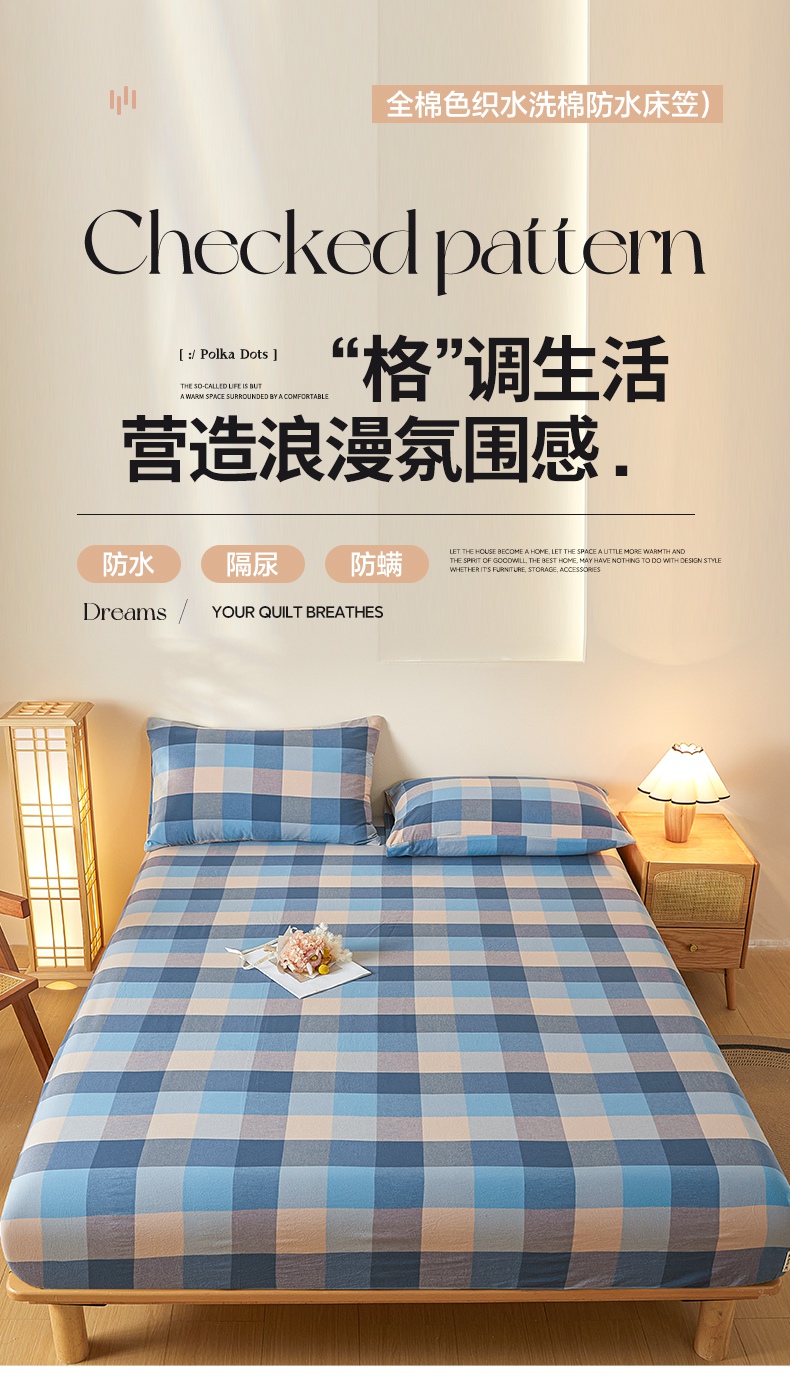 • 91家纺网 家纺一手货源 找家纺 芬晴家纺 2024新款全棉色织防水床笠大床款 防水-英伦格