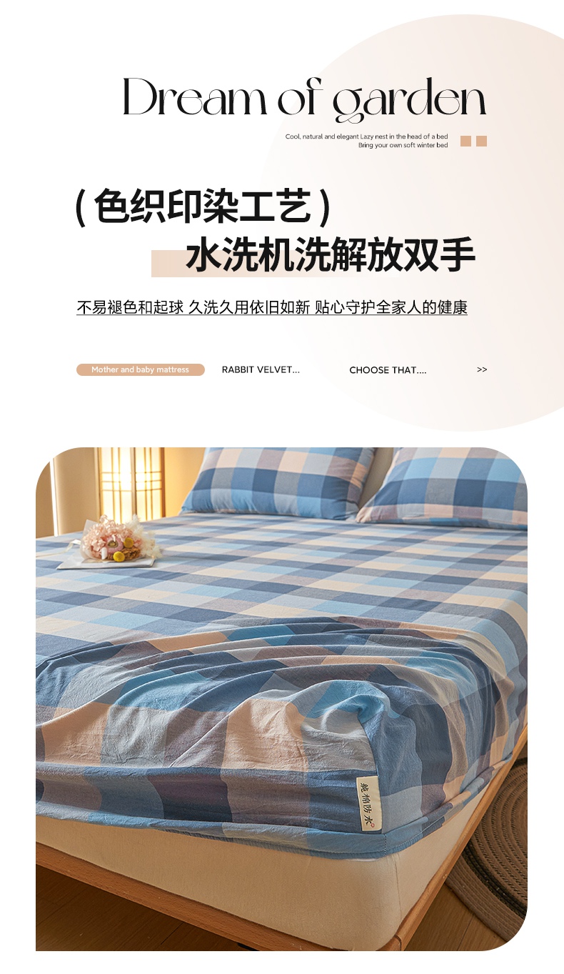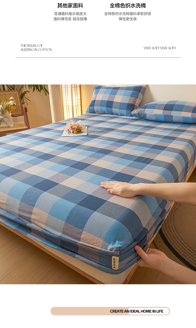 (总)芬晴家纺 2025新款色织全棉棉花床笠,本色,经典格,诺卡,清风-粉,清风-灰,清风-兰,日常