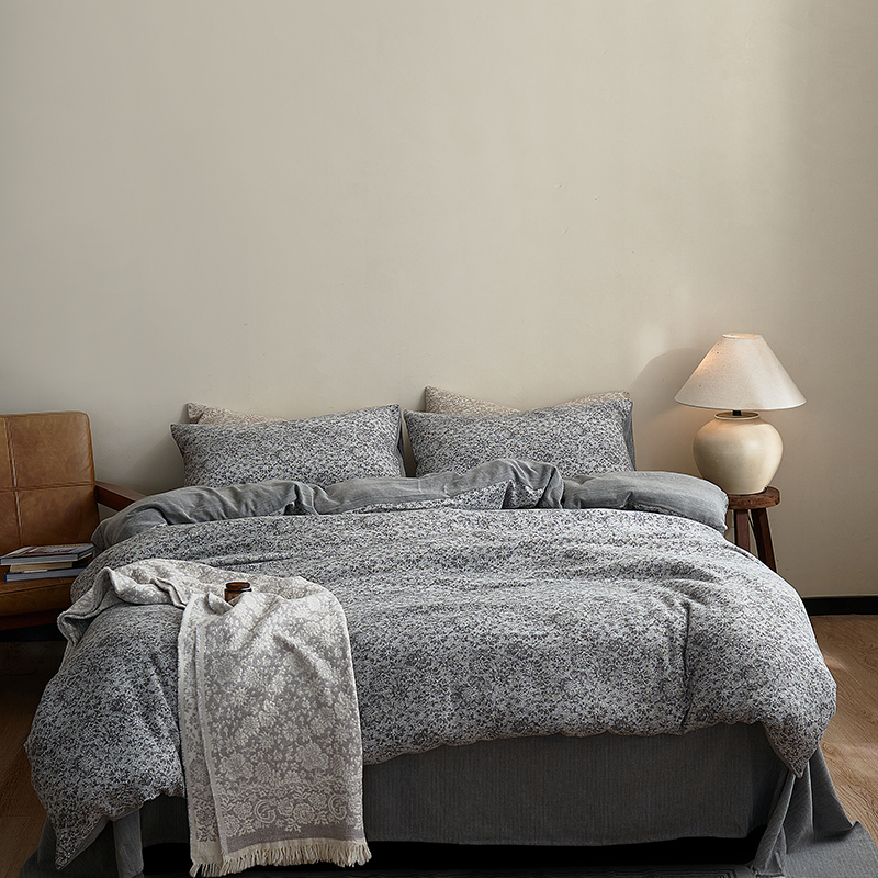 (总)子和家居 2025新款全棉麻感棉花朵款四件套-场景1,麻感棉花朵款四件套