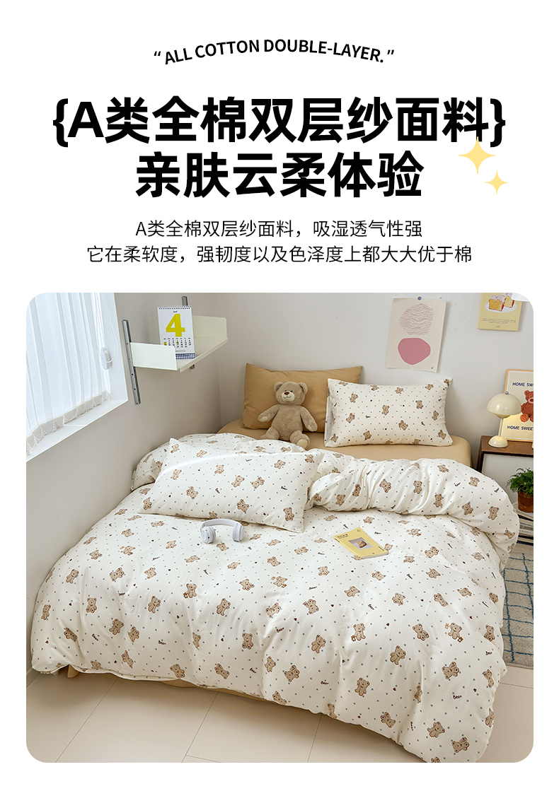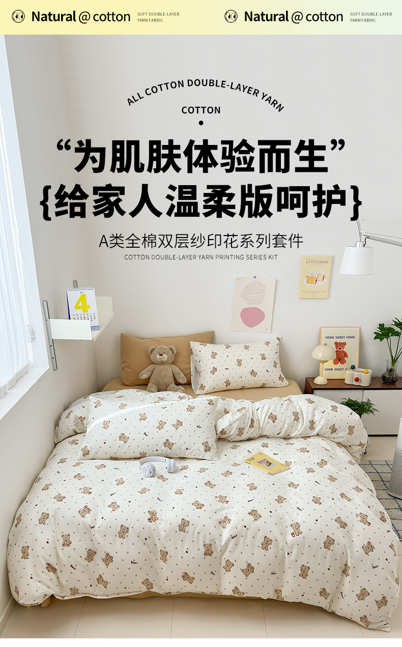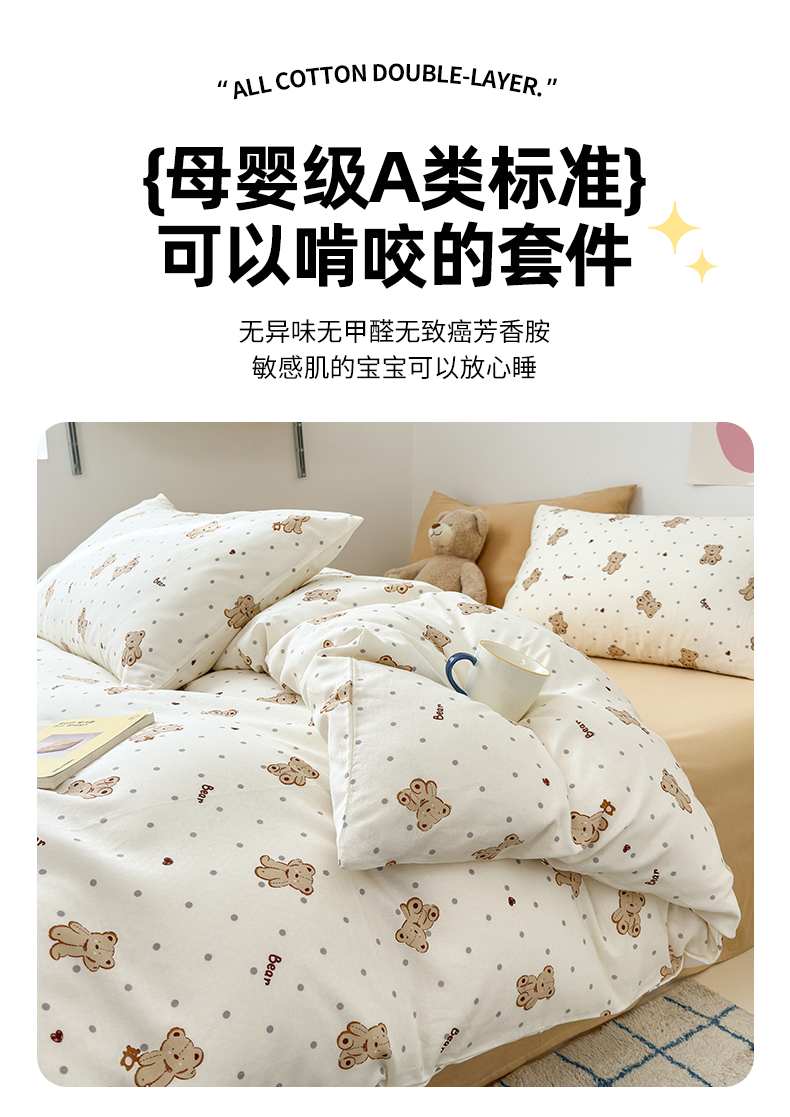 当前位置: 91家纺网 > 商品网购 > 床品套件 > 四件套 > 全棉普通四件套 > (优质买家秀 热卖不断货)A类母婴级卡通花卉儿童100纯棉全棉四件套全棉纯棉全棉四件套纯棉全棉双层纱 小熊派