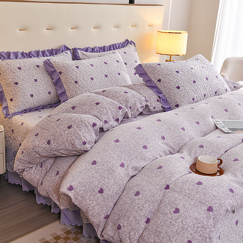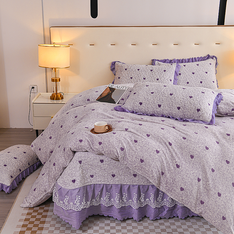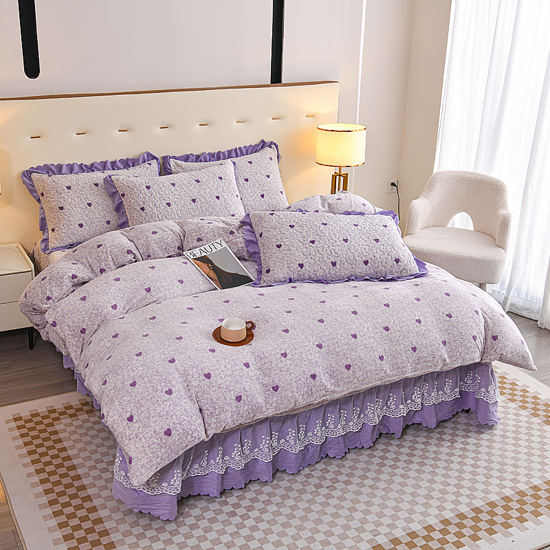 当前位置: 91家纺网 > 商品网购 > 床品套件 > 四件套 > 牛奶绒四件套 > (买家秀 爆款不断货)A类母婴级双层蕾丝花边床裙床盖三件套牛奶绒床盖三件套萱花绒床护垫牛奶绒床褥卡通 花边-爱心紫