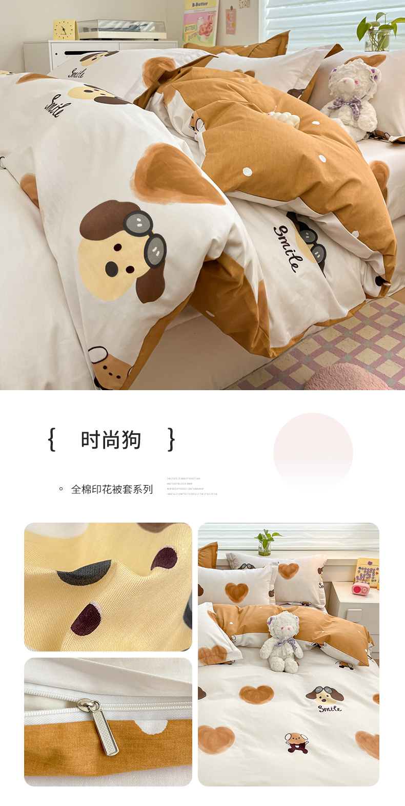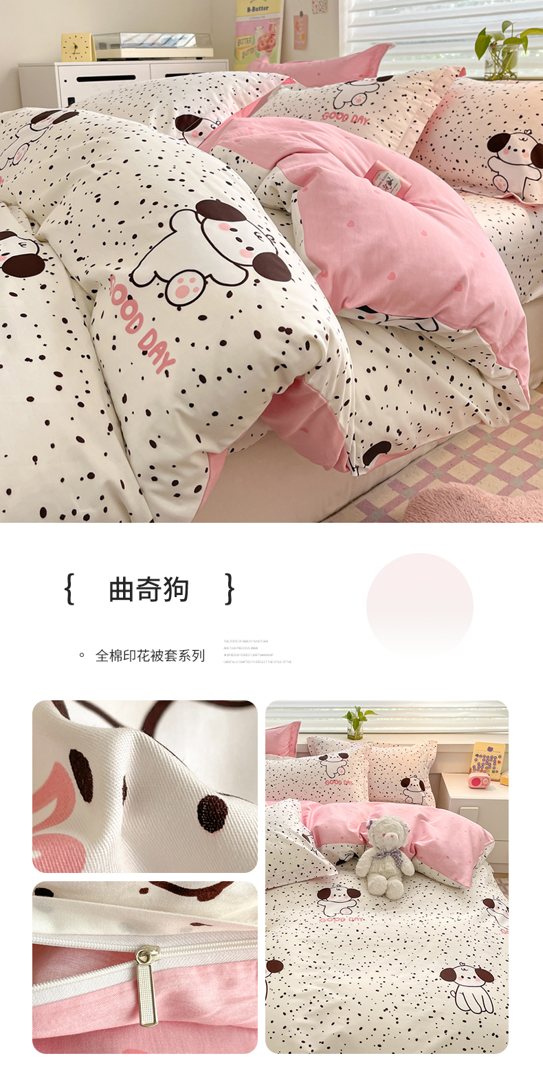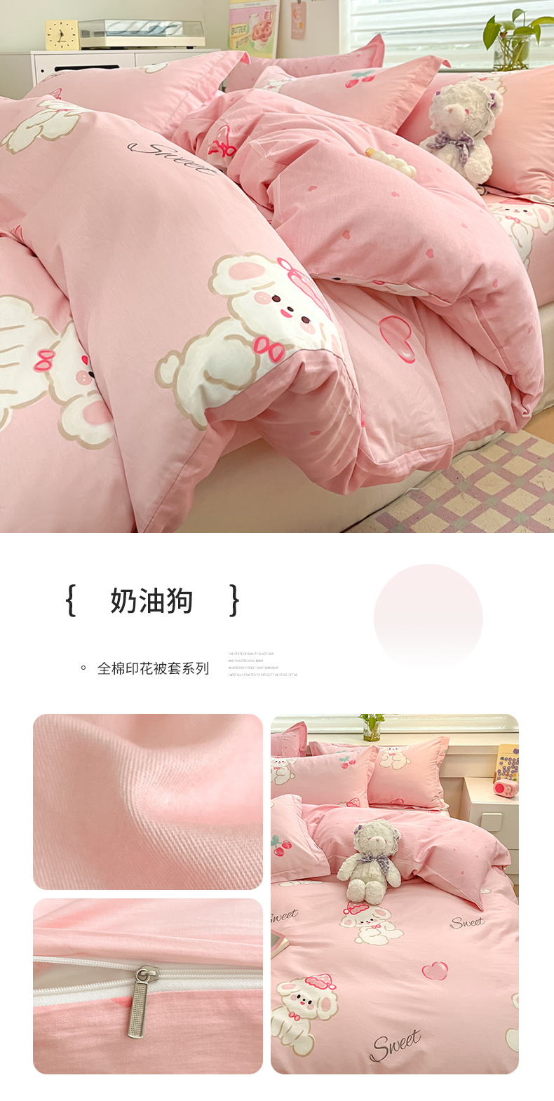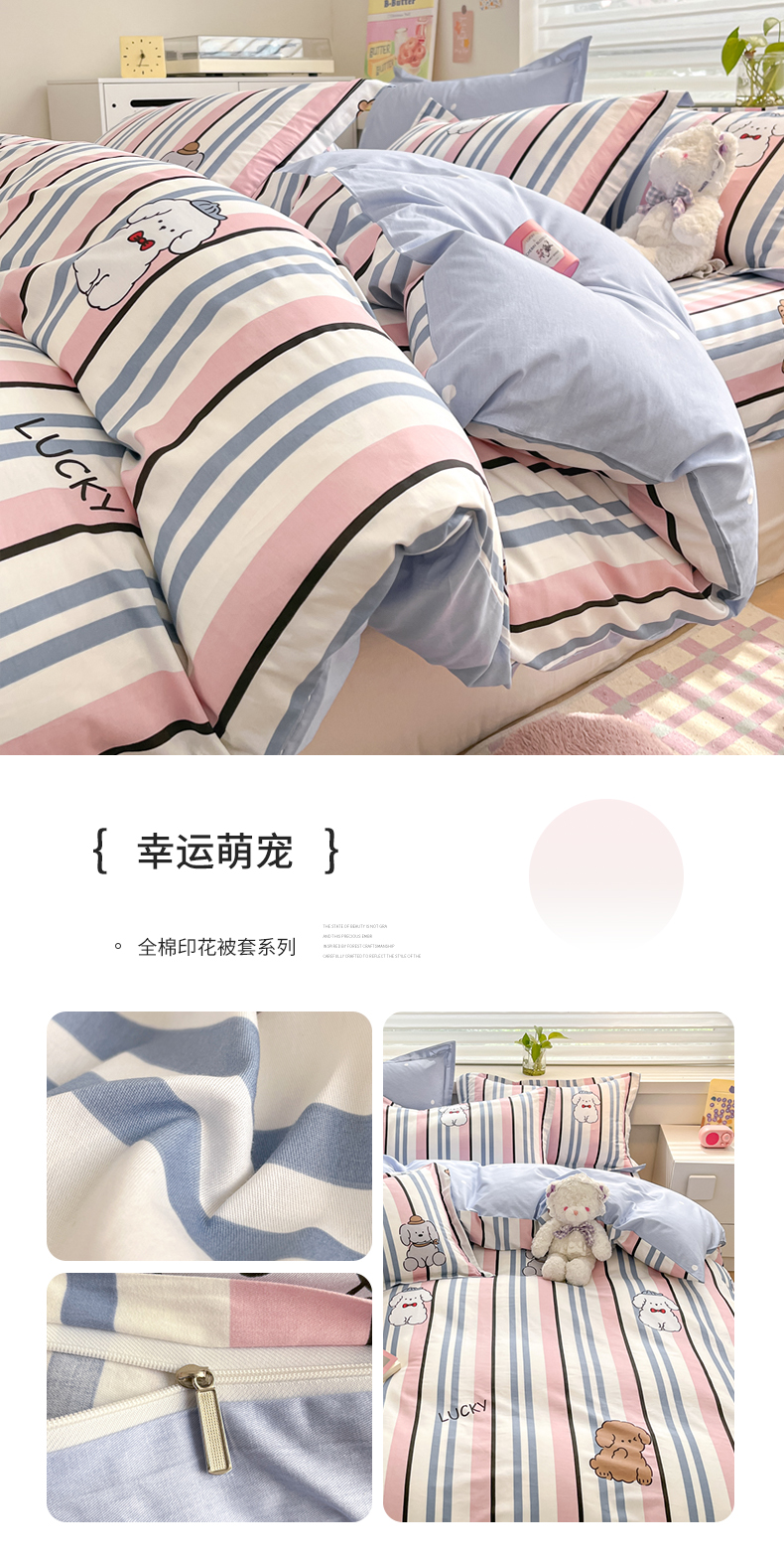 (总)(买家秀 热款花型 不断货)母婴级A类ins风水洗棉四件套水洗棉毛巾绣四件套水洗棉床笠四件套提花绣花,幸运小狗,开心熊猫,小红帽,小兔音乐会