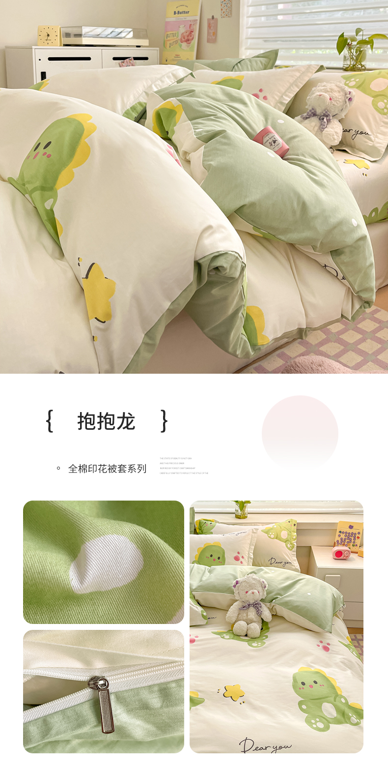 (总)买家秀热款花型不断货 母婴级A类ins风水洗棉四件套水洗棉毛巾绣四件套水洗棉床笠四件套提花绣花四件套,恐龙宝贝,花朵兔兔,面包小狗,奶油小甜甜,奶油芝士,兔伙伴,樱桃兔,优雅