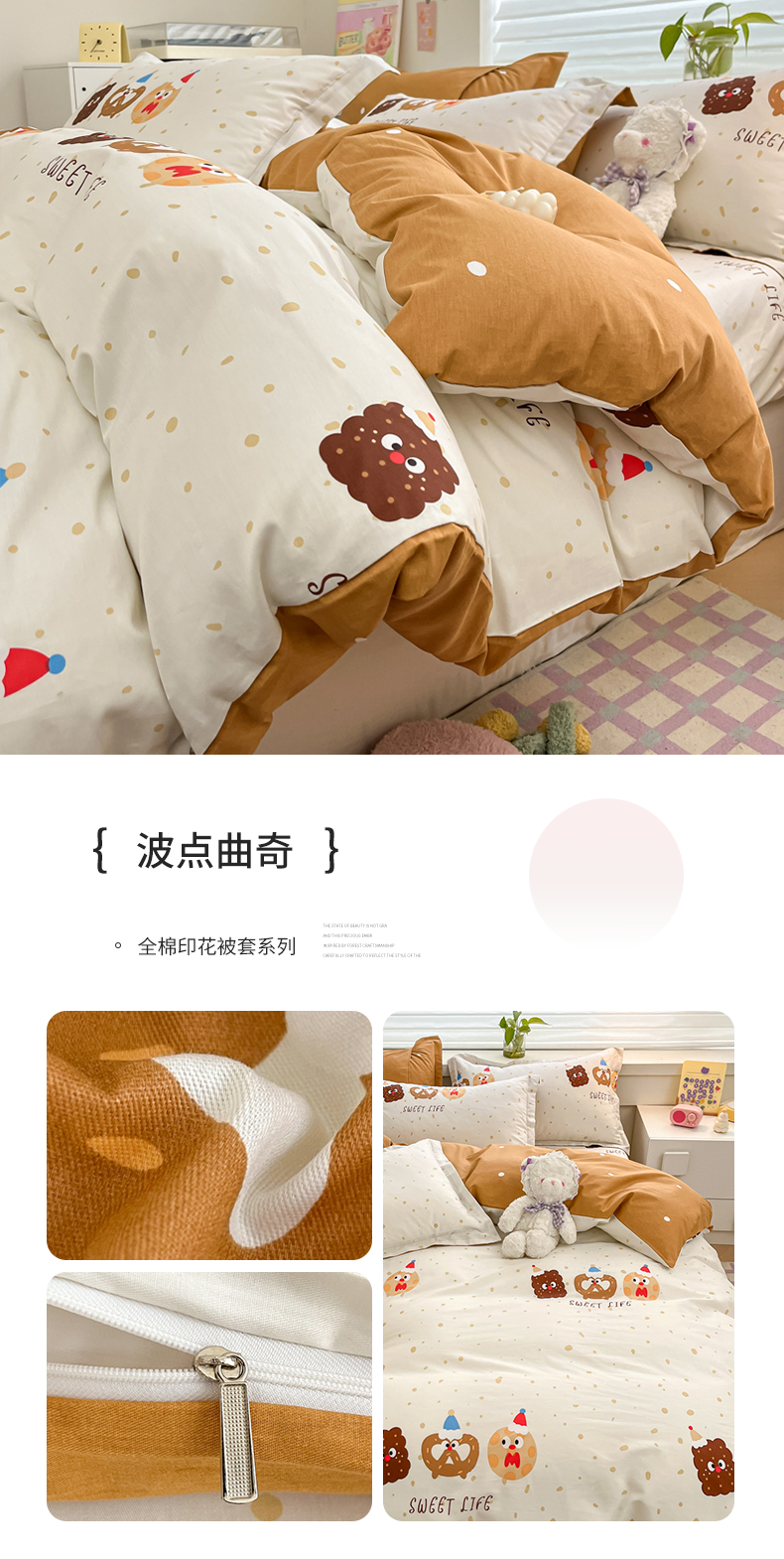 商品名称:(总)(优质买家秀热卖不断货)A类母婴级卡通花卉儿童纯棉全棉被套三件套全棉纯棉被套三件套纯棉全棉被套四件套