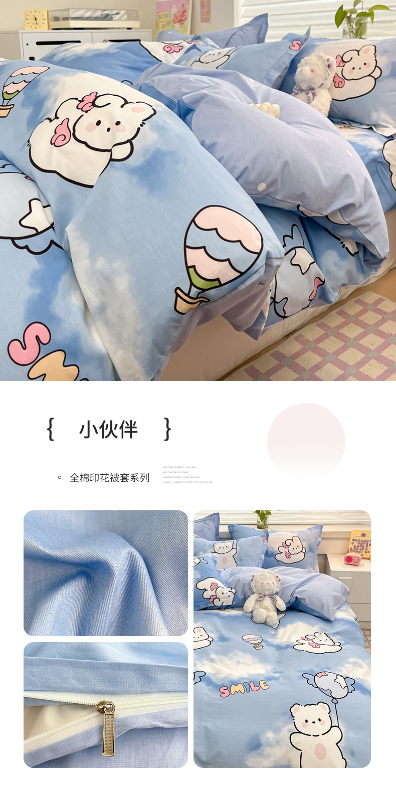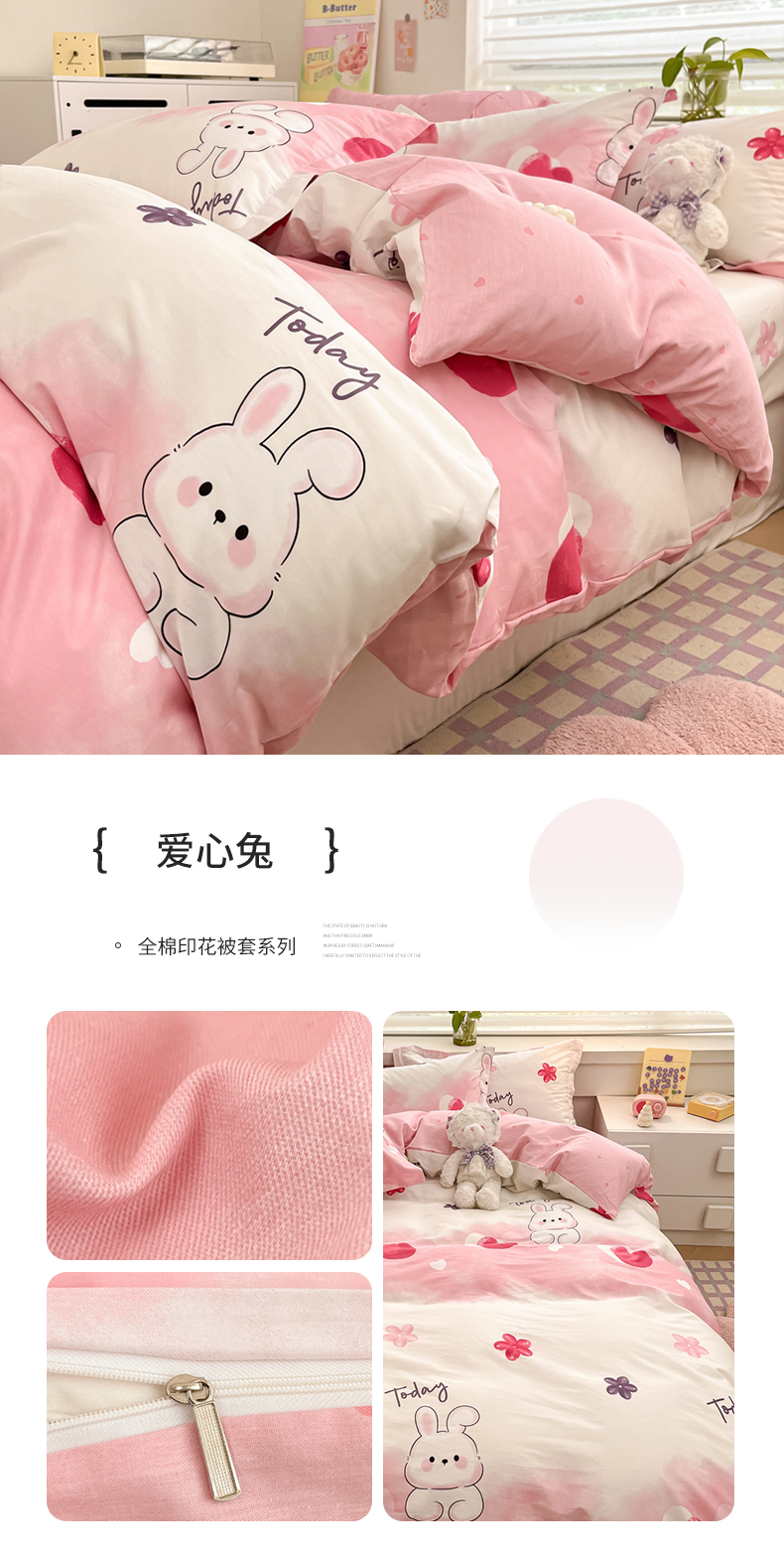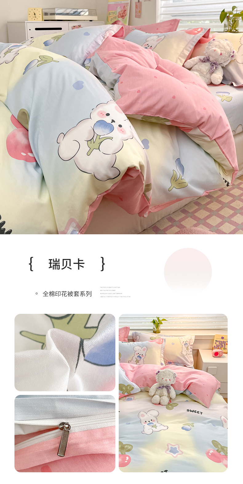 (总)(买家秀爆款不断货)儿童卡通花卉高克重亲肤棉13372全棉纯棉四件套全棉纯棉全棉四件套全棉纯棉三件套,采薇兔,巴尼,茶话会,春意萌,椿野,莱茵小兔,木槿,南枝,青蕊,青棠,森之境,晚风,忘忧草,绽蔓