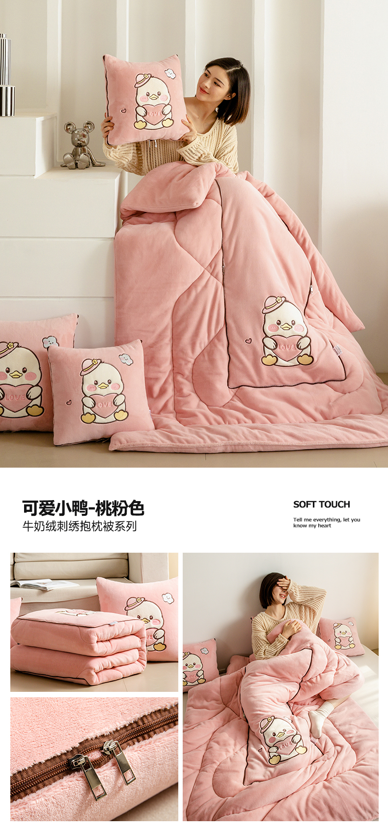 商品名称:雷人家纺 2024新款A类加厚加重贴布绣牛奶绒抱枕被 可爱小鸭桃粉色