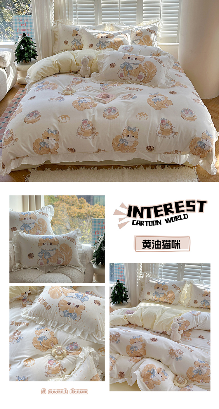 商品名称:2025新款洛丽塔全棉花边四件套 黄油猫咪