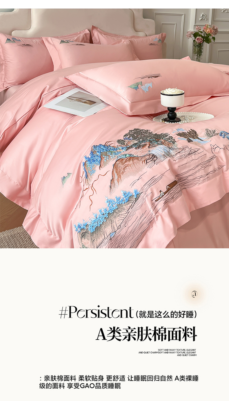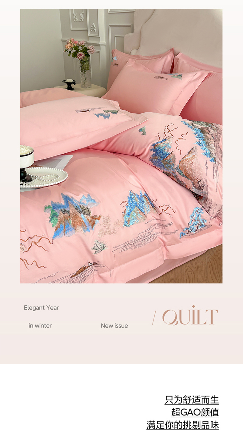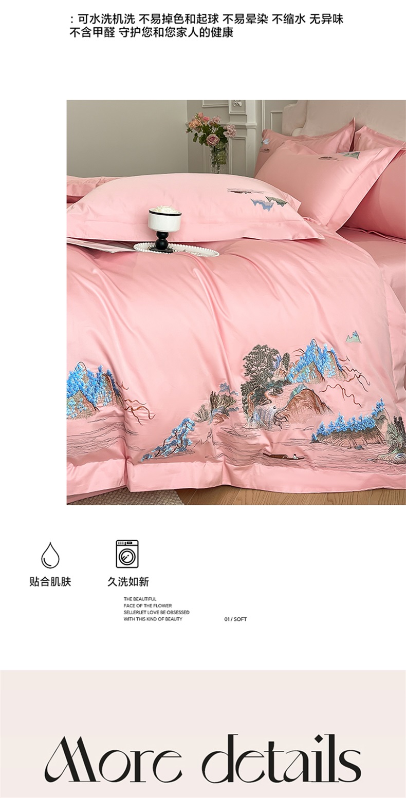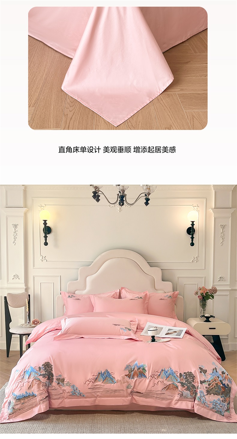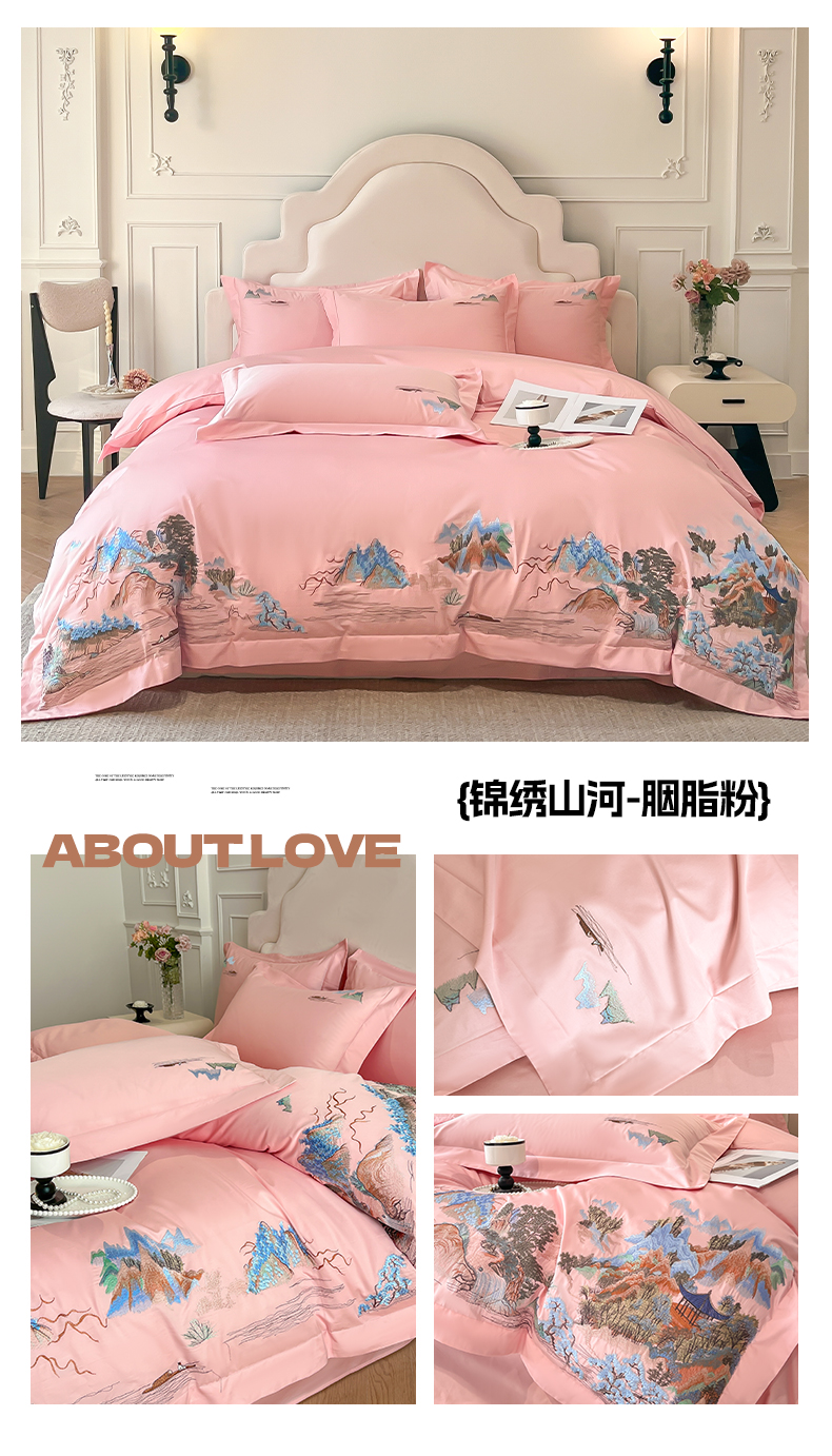 商品名称:帝王家纺 2025新款亲肤棉磨毛重工绣花四件套-锦绣山河 锦绣山河-胭脂粉