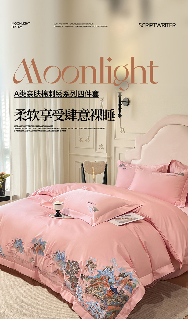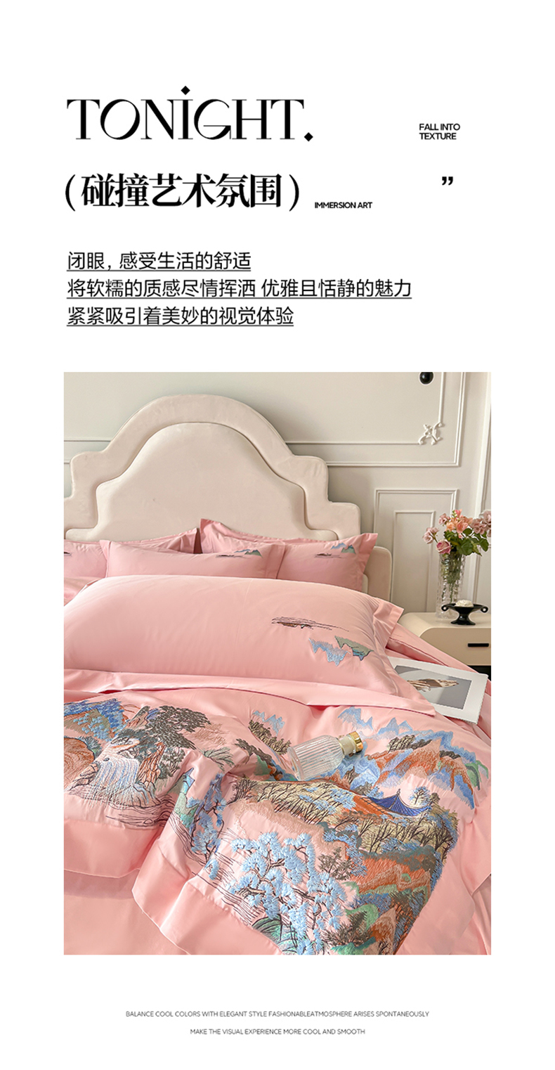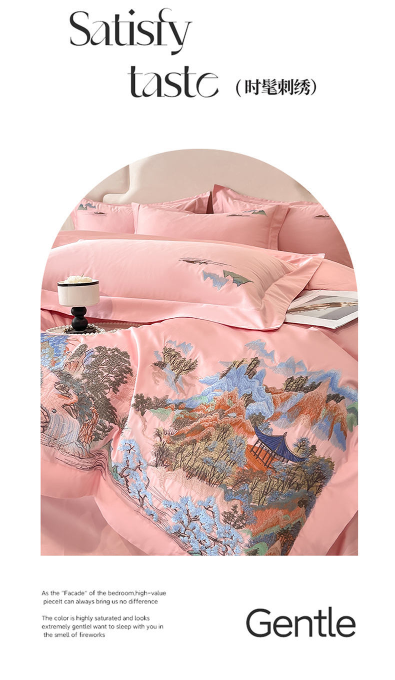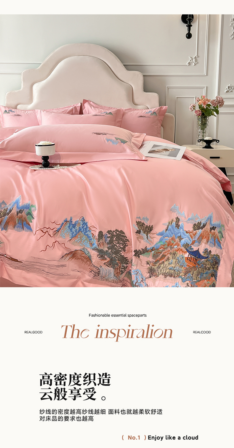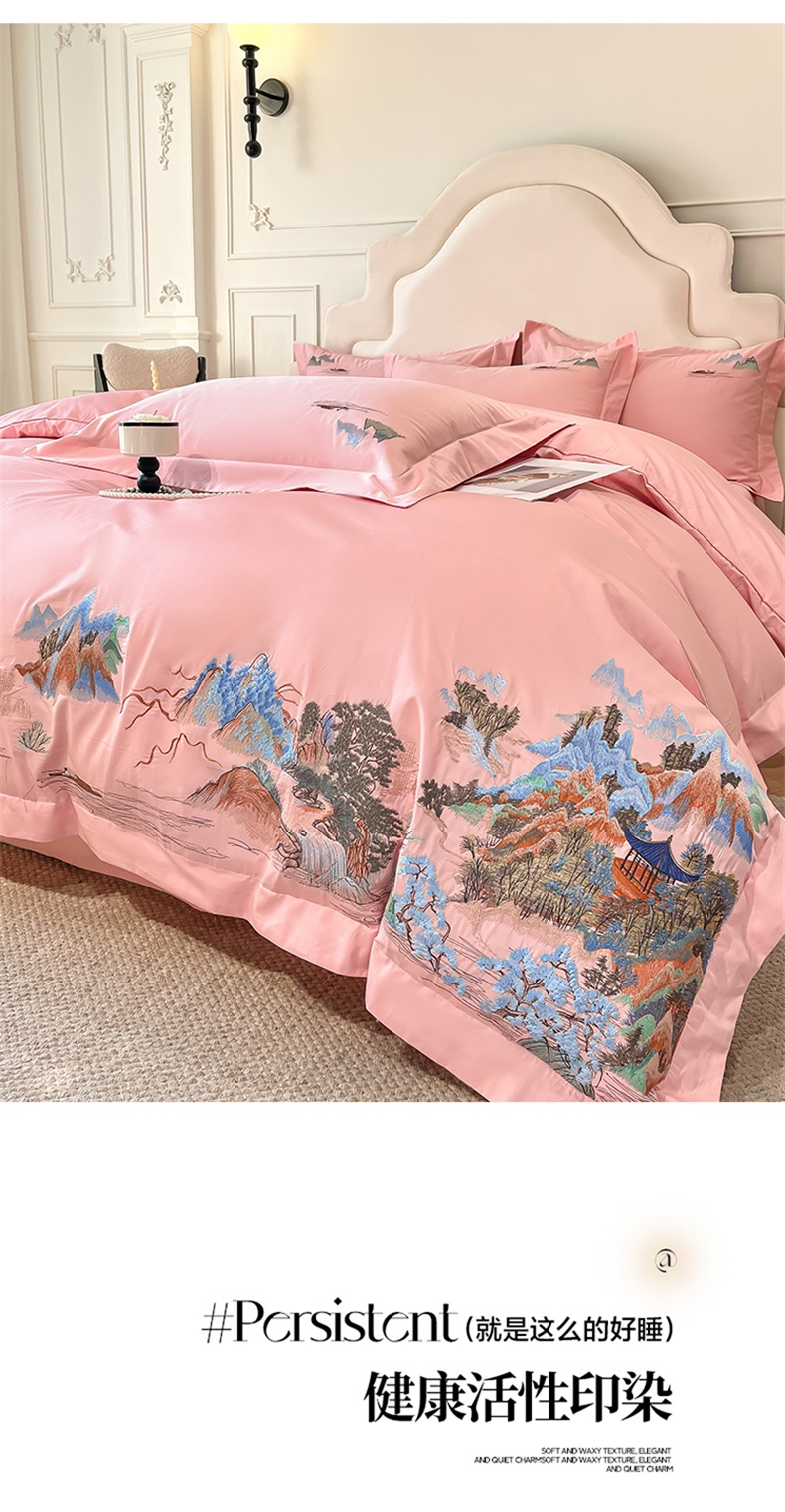 商品名称:帝王家纺 2025新款亲肤棉磨毛重工绣花四件套-锦绣山河 锦绣山河-胭脂粉