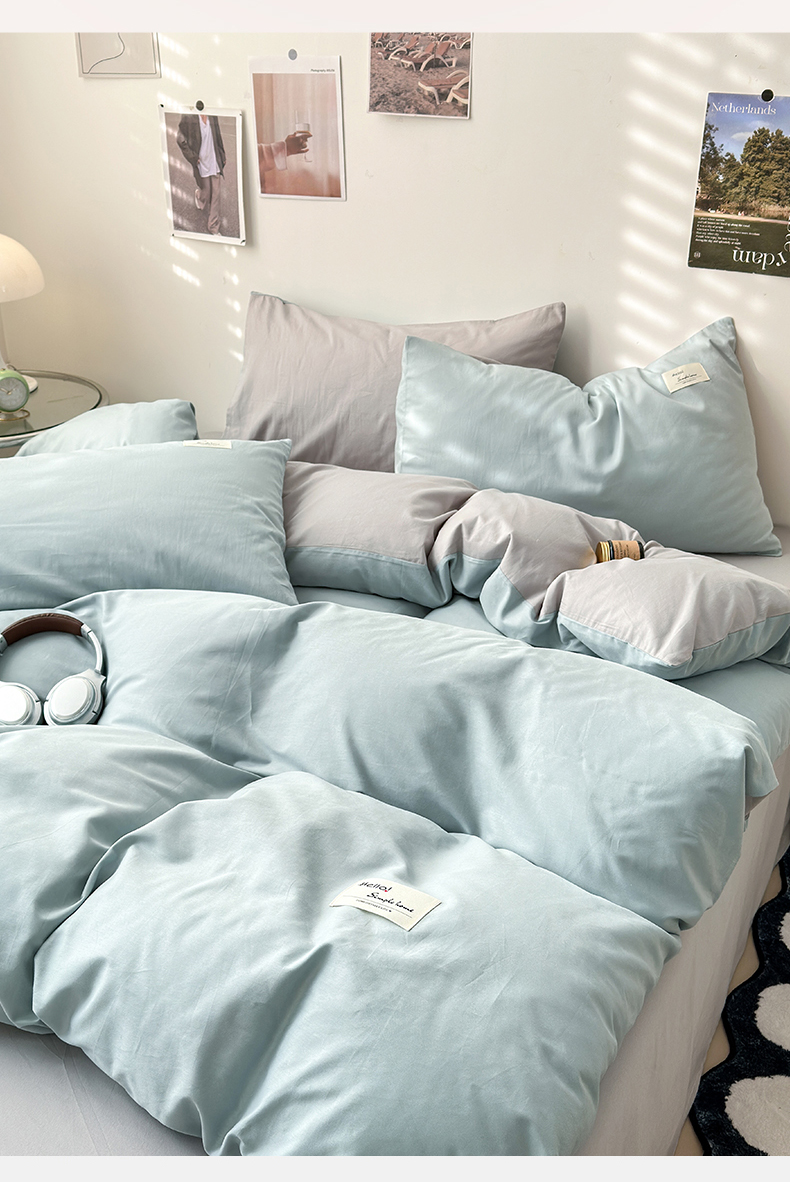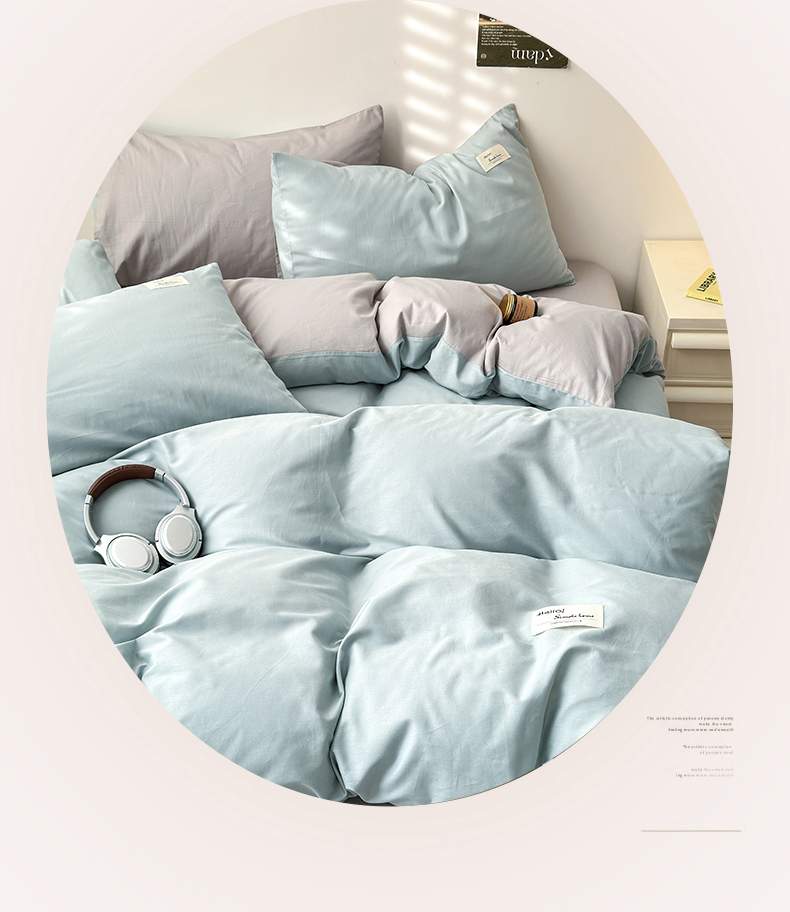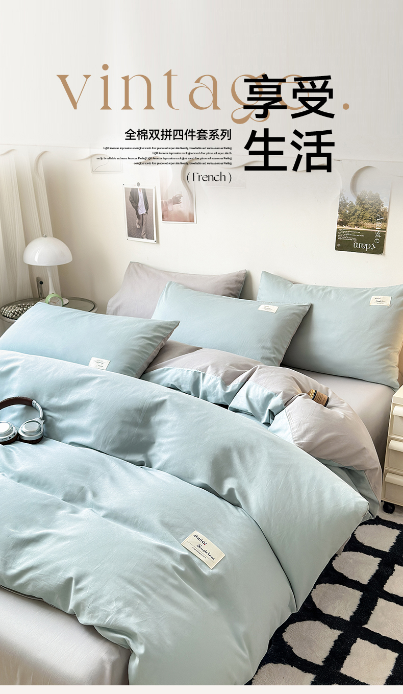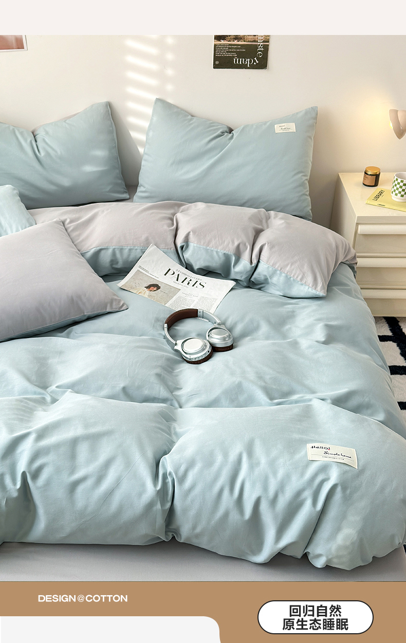当前位置: 91家纺网 > 商品网购 > 床品套件 > 四件套 > 全棉普通四件套 > 曼之夏 2025新款全棉双拼四件套 贴标-水兰+米灰