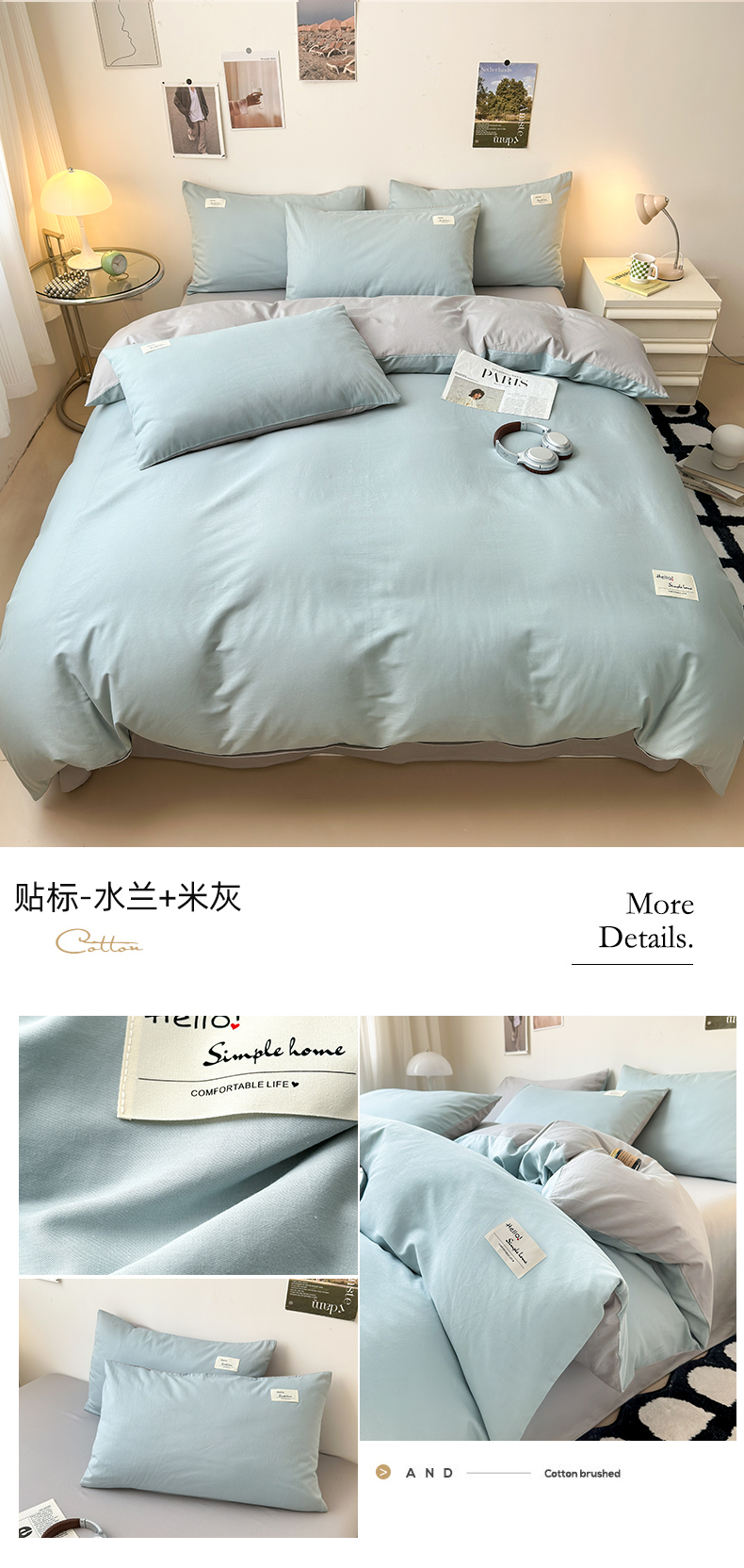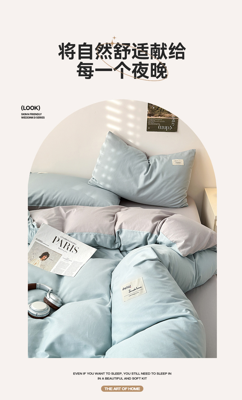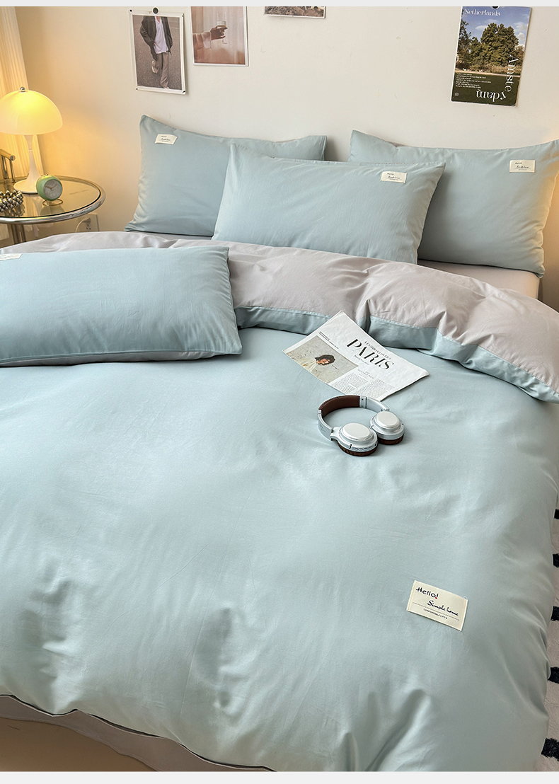 当前位置: 91家纺网 > 商品网购 > 床品套件 > 四件套 > 全棉普通四件套 > 曼之夏 2025新款全棉双拼四件套 贴标-水兰+米灰