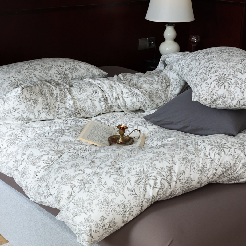 梦可莱家居 2025新款全棉针织四件套【加大系列】 枝秋灰
