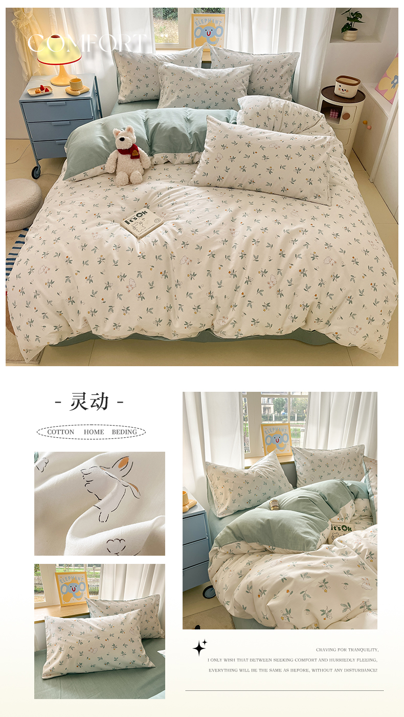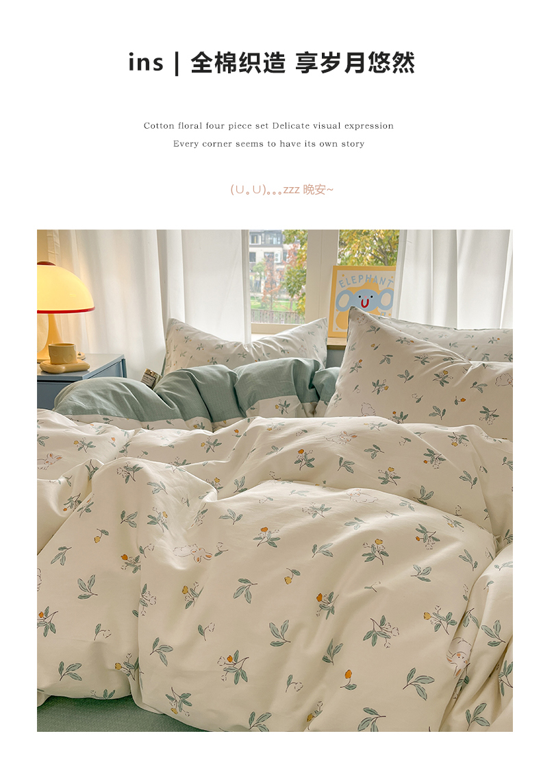 商品名称:捌月 2025新款舒适全棉印花四件套 灵动
