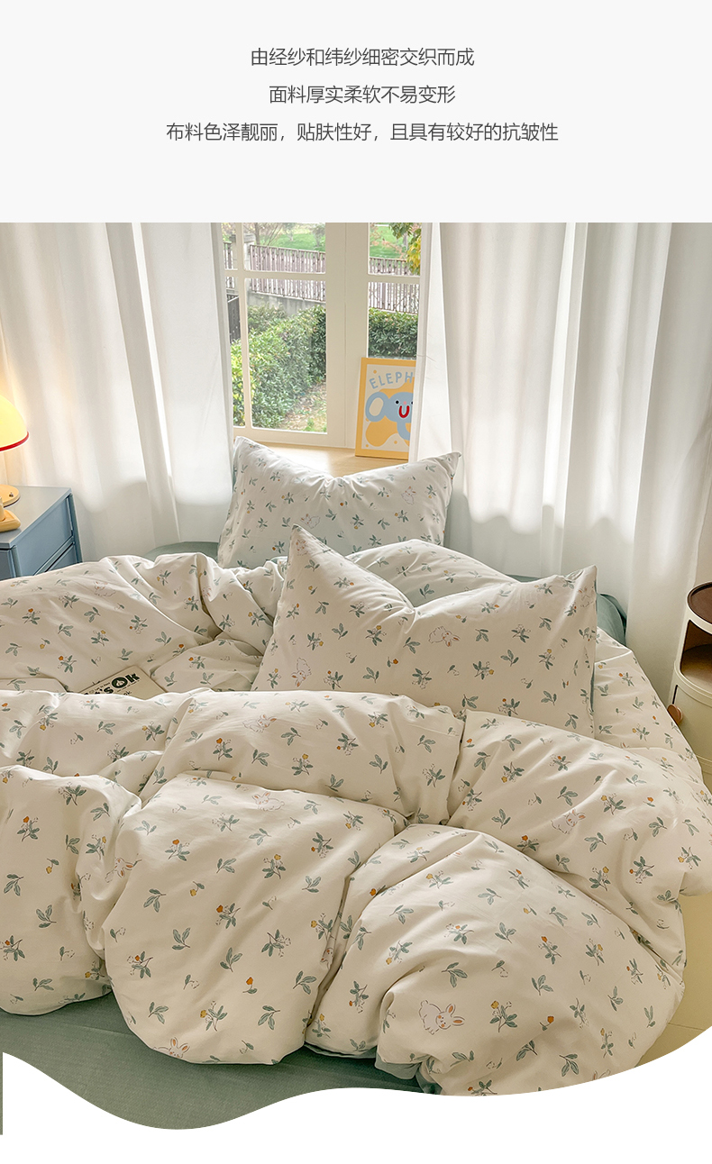 (总)捌月 2023新款13372全棉四件套竖纹印花系列,草莓园,兔小姐,小兰花,小甜心