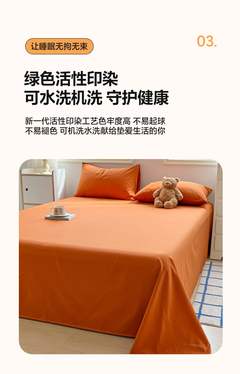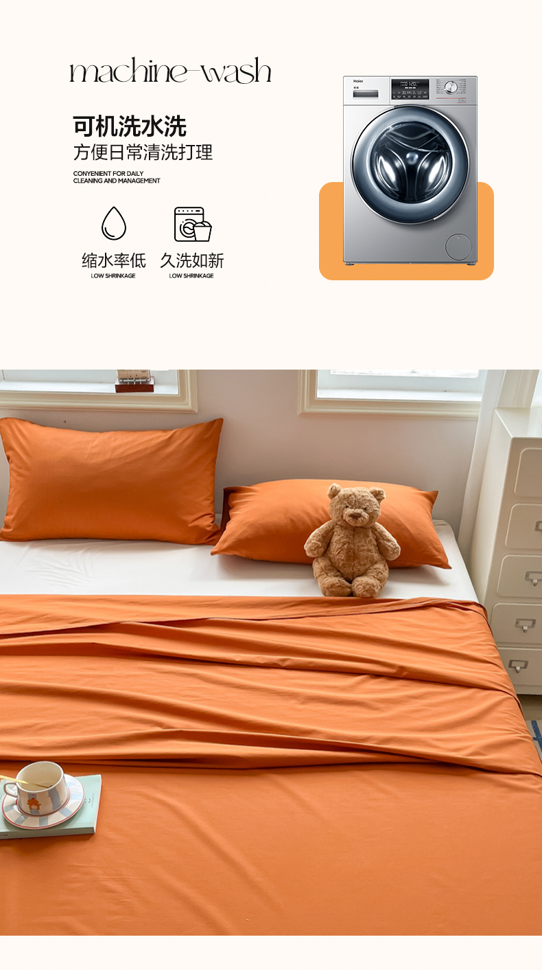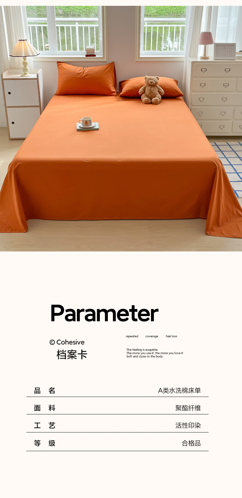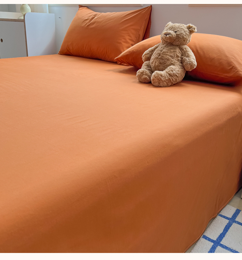 韩巢家纺 2025新款格子纯色A类水洗棉床单单件 A类铁锈红-床单