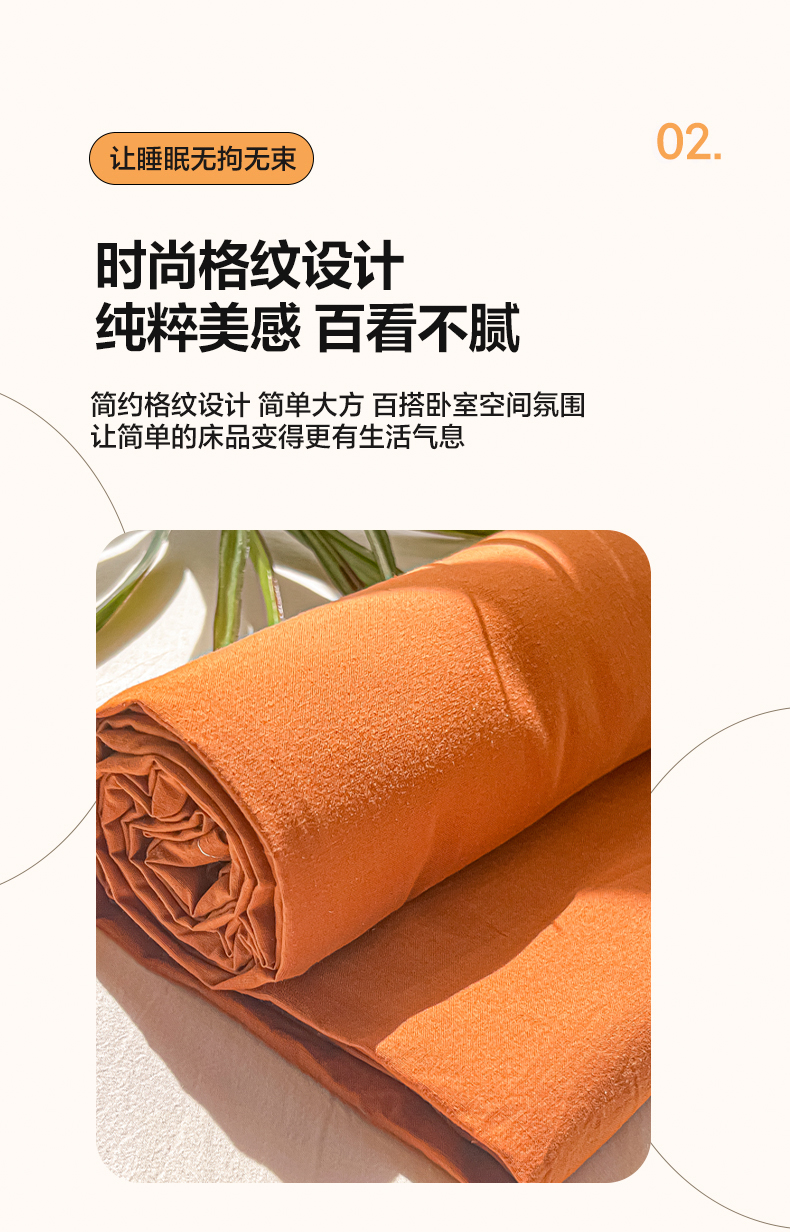 商品名称:韩巢家纺 2025新款格子纯色A类水洗棉床单单件 A类铁锈红-床单