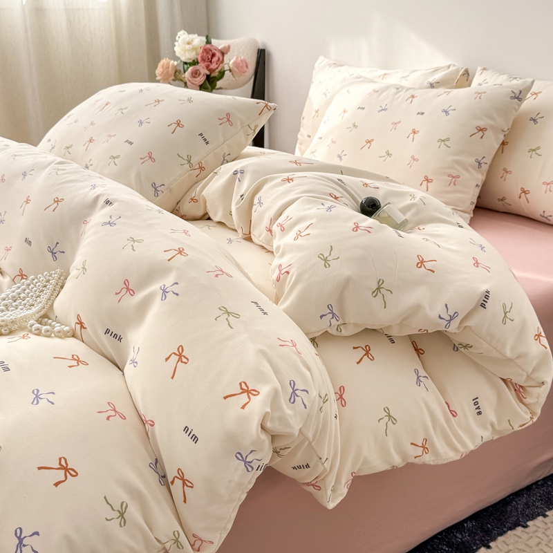 欧尚 2025新款有氧针织双层纱四件套 蝴蝶结