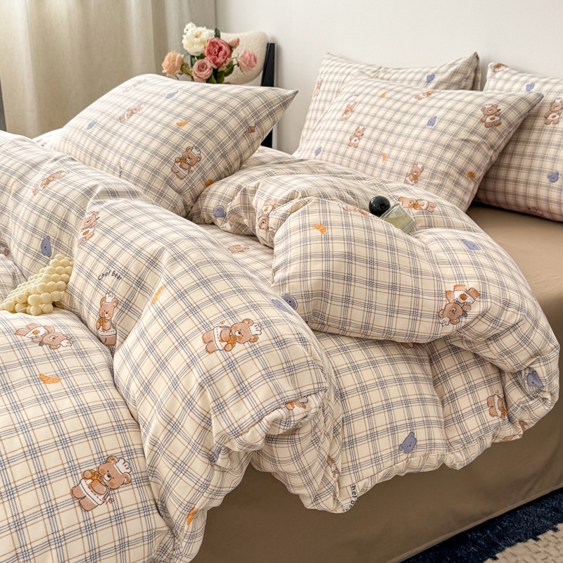 欧尚 2025新款有氧针织双层纱四件套 可爱熊