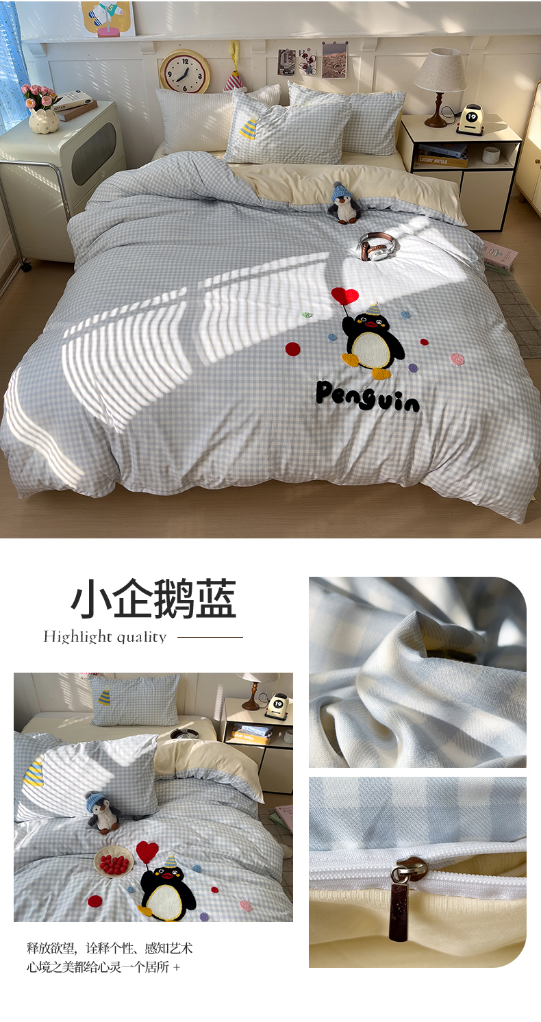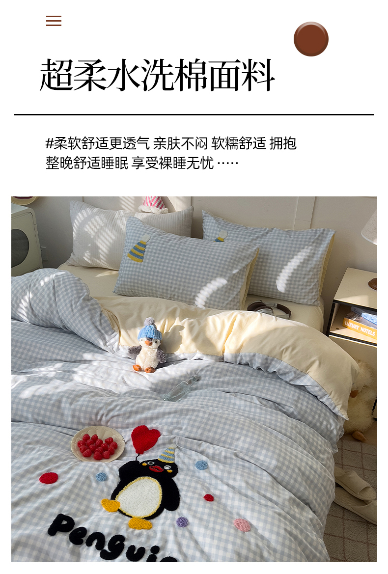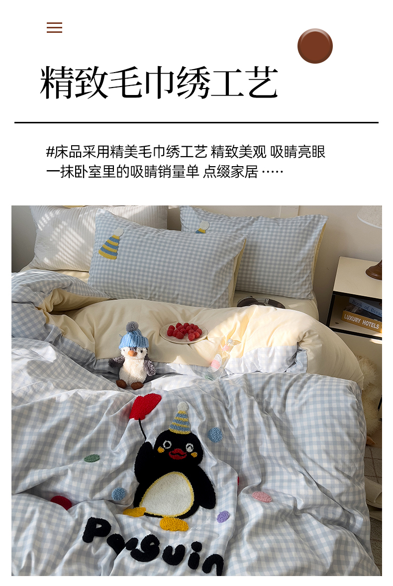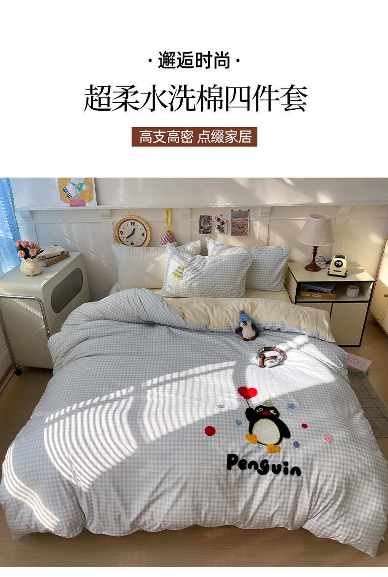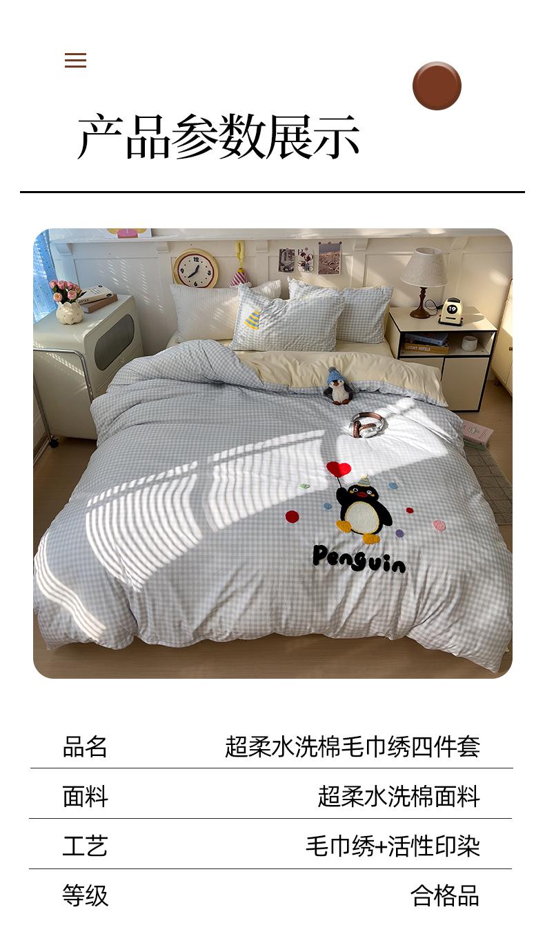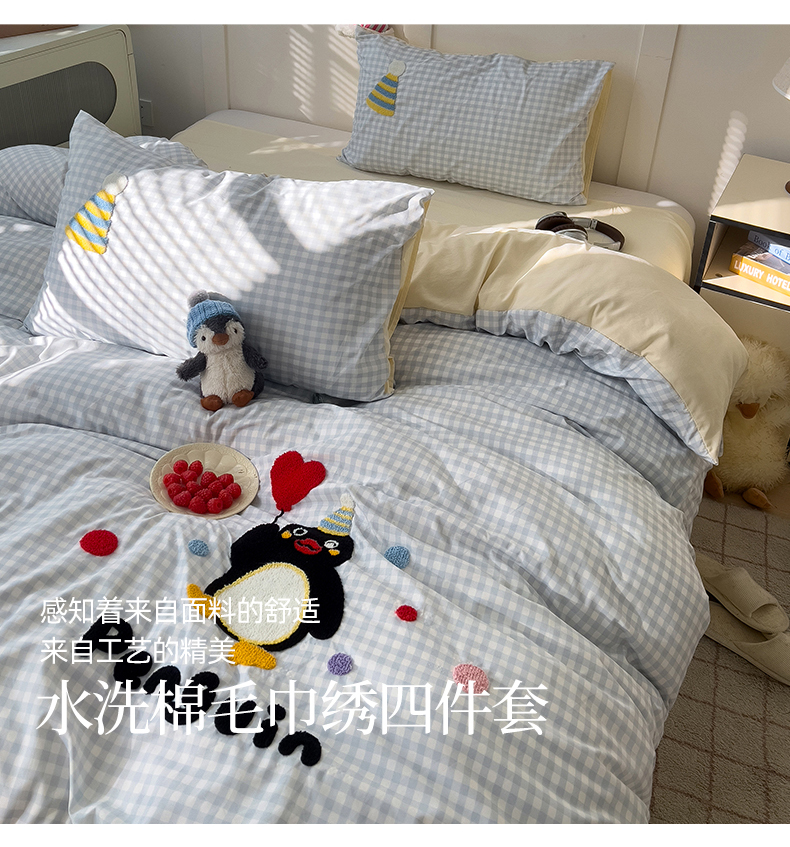 当前位置: 91家纺网 > 商品网购 > 床品套件 > 四件套 > 水洗棉四件套 > 水墨江南 2025新款超柔水洗棉毛巾绣系列四件套 小企鹅蓝