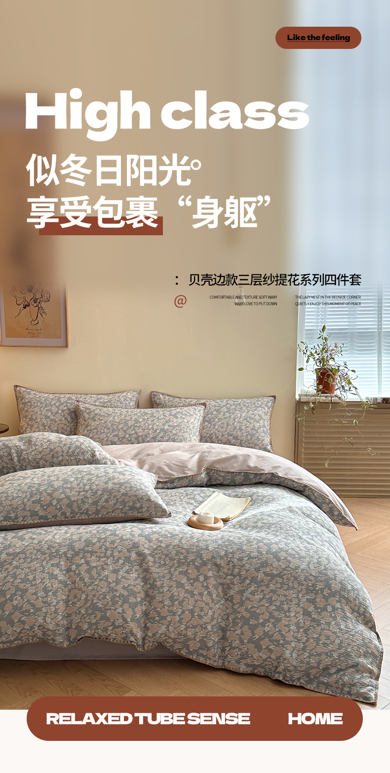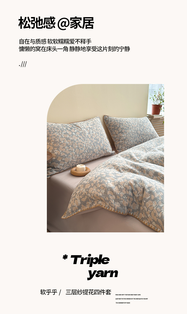 (总)卡巴伦家纺 2025新款全棉A类人字斜三层纱提花四件套,伯尔纳-奶茶,伯尔纳-粉,伯尔纳-灰,伯尔纳-咖,苏珊格-粉,苏珊格-灰,苏珊格-咖,苏珊格-奶茶