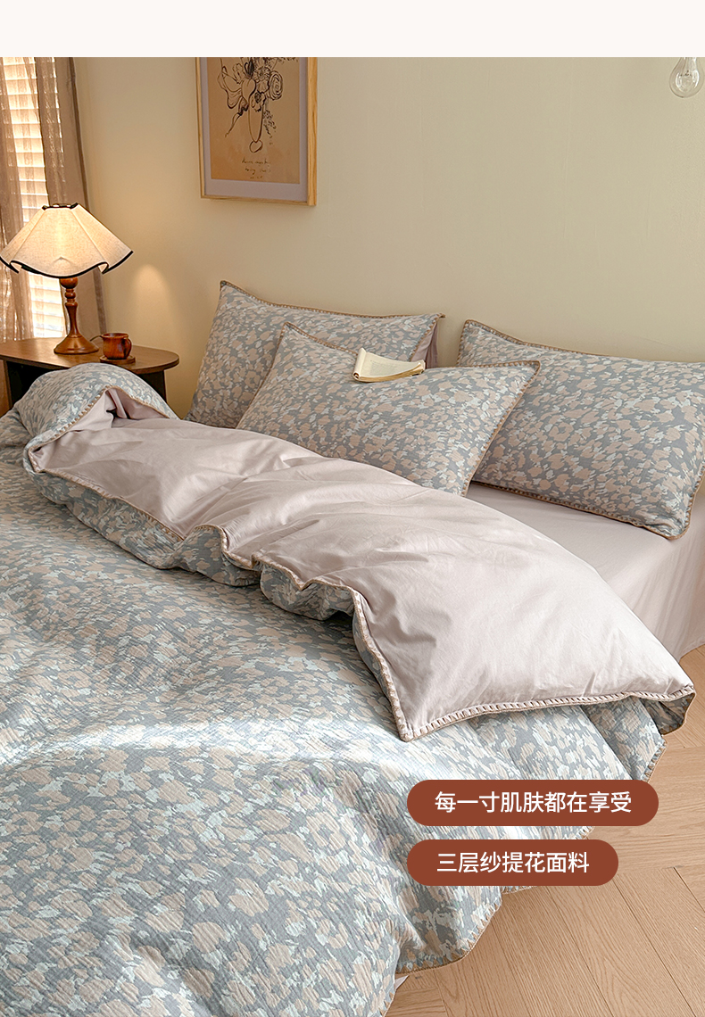 (总)卡巴伦家纺 2025新款全棉双层皱皱纱现代中古风数码四件套,细雨汀花-红,椿山集,蝴蝶剪影-蓝,蝴蝶剪影-棕,花弄影-黑,花弄影-绿,细雨汀花-米,细雨汀花-紫,枝瑶,织兮,竹影