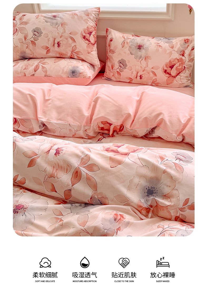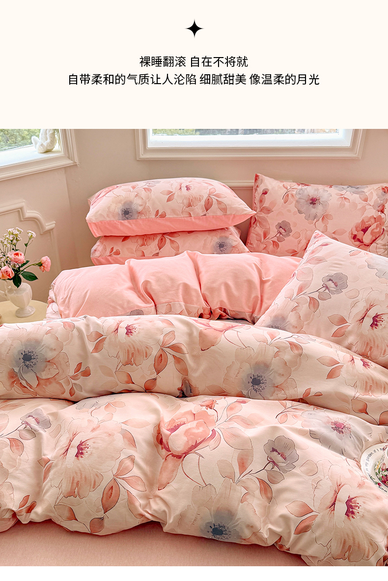 商品名称:名兮家居 2025新款13372全棉四件套-大花卉系列 花语