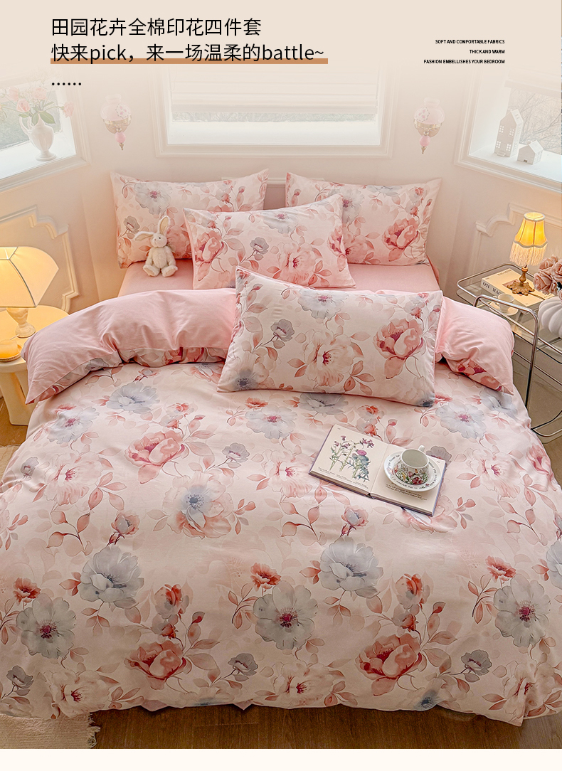 (总)名兮 2023新款全棉印花小清新四件套,爱莲娜,春暖花开,少女梦,小确幸,星辰入梦,幸运花,幽幽仙草,致青春