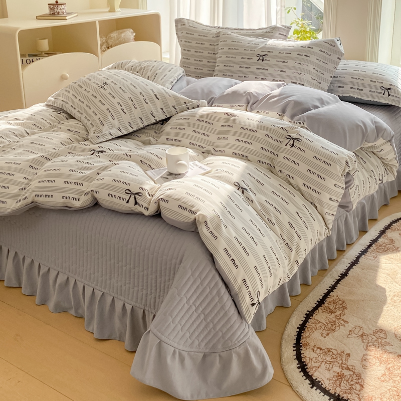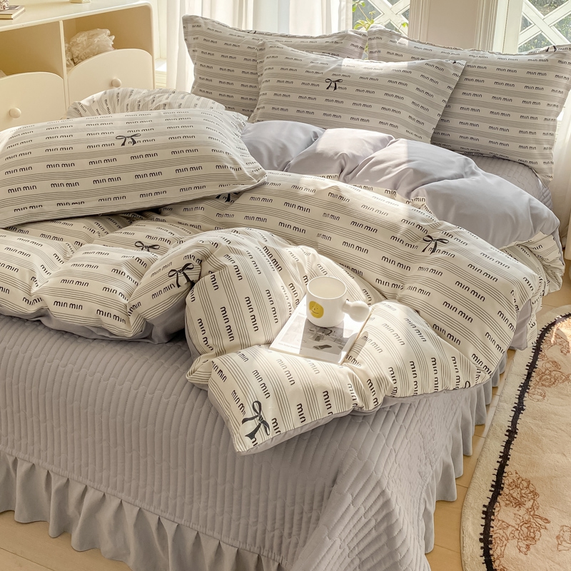 尚美 2025新款小碎花针织棉床盖四件套 迷你蝴蝶