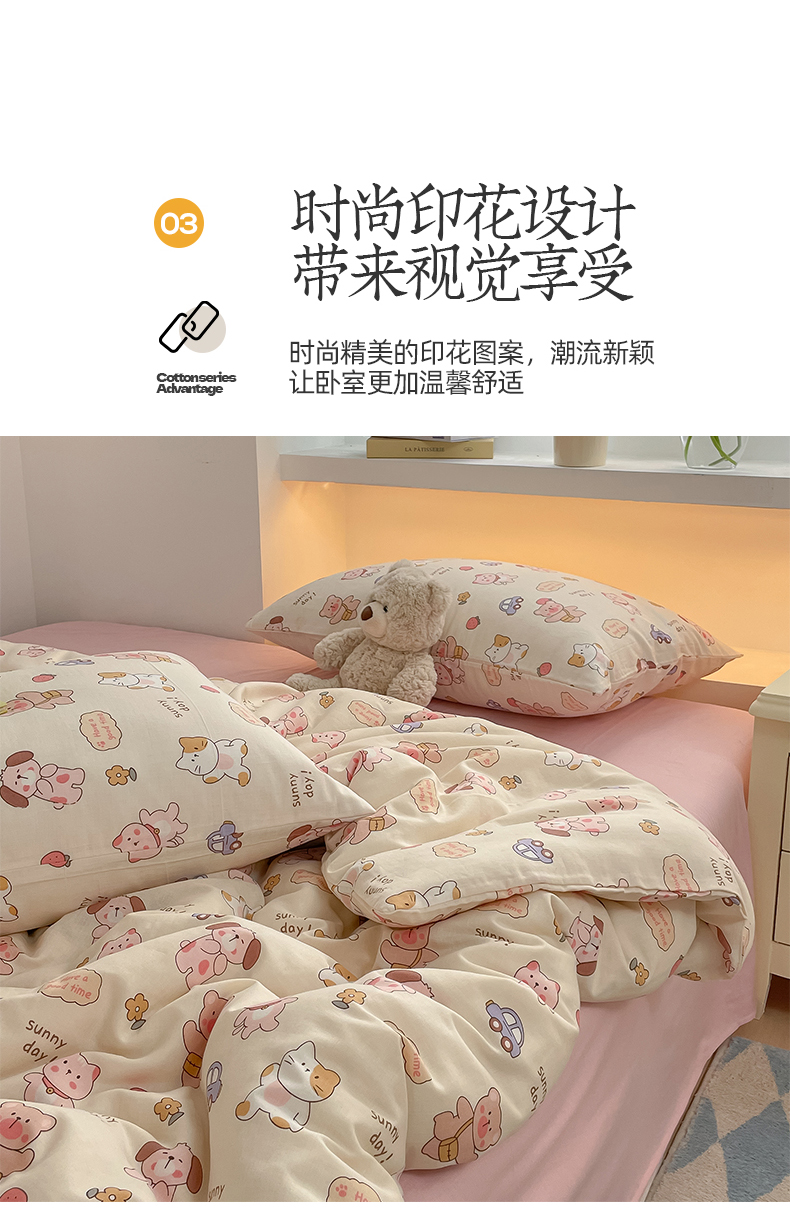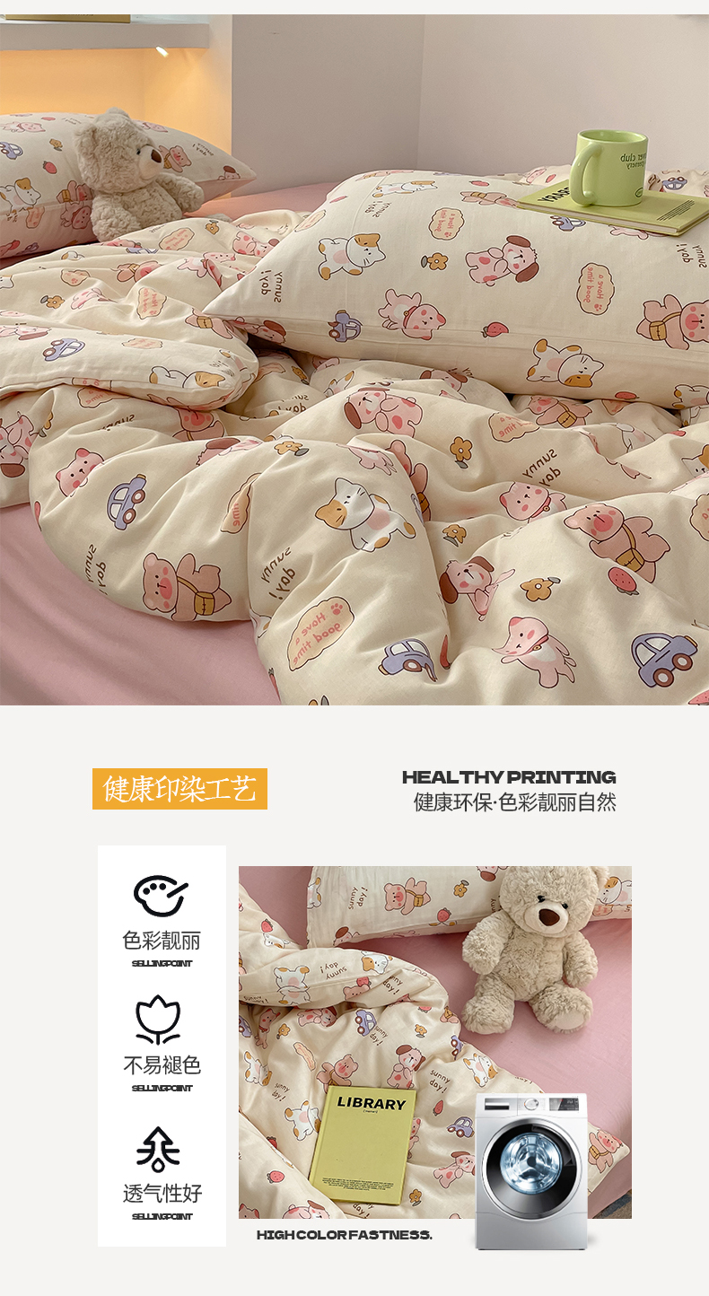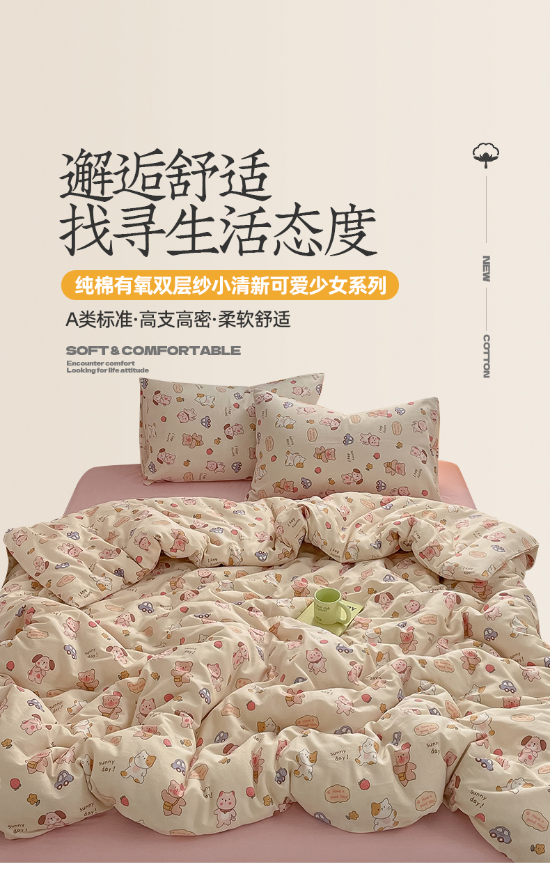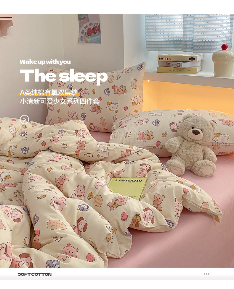 商品名称:桃子家居2025新款A类纯棉有氧双层纱小清新可爱少女系列四件套 棉双层纱-萌萌日记