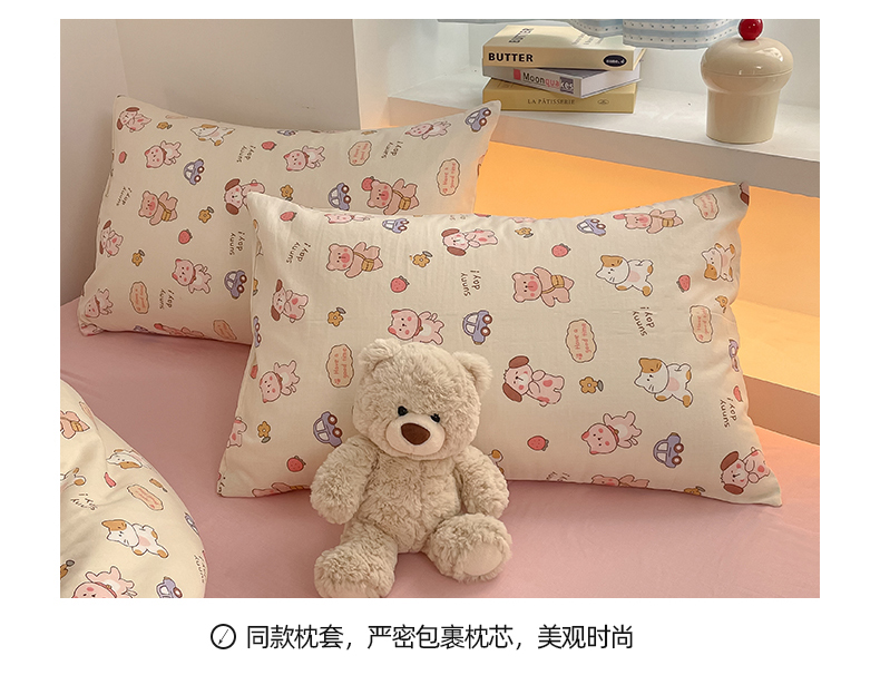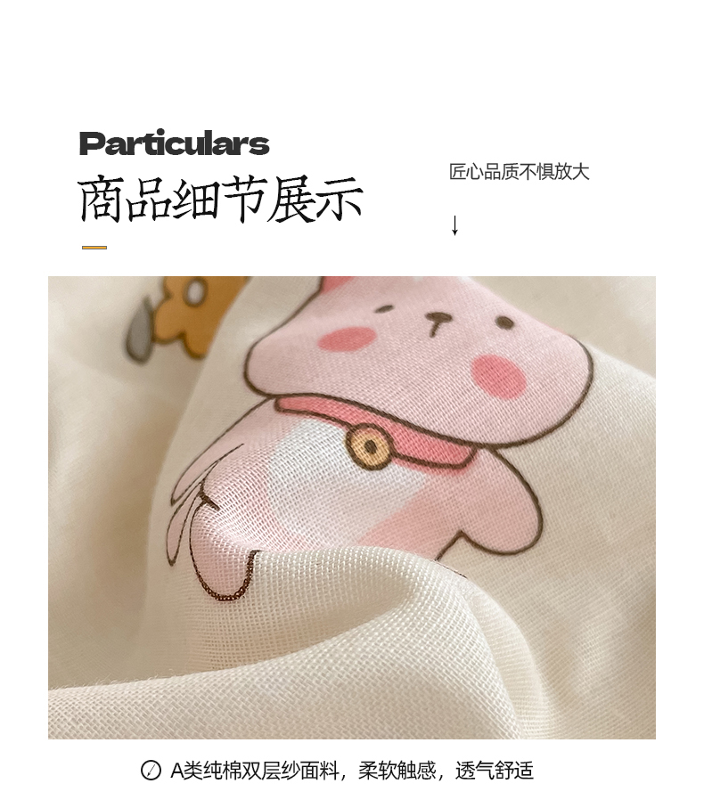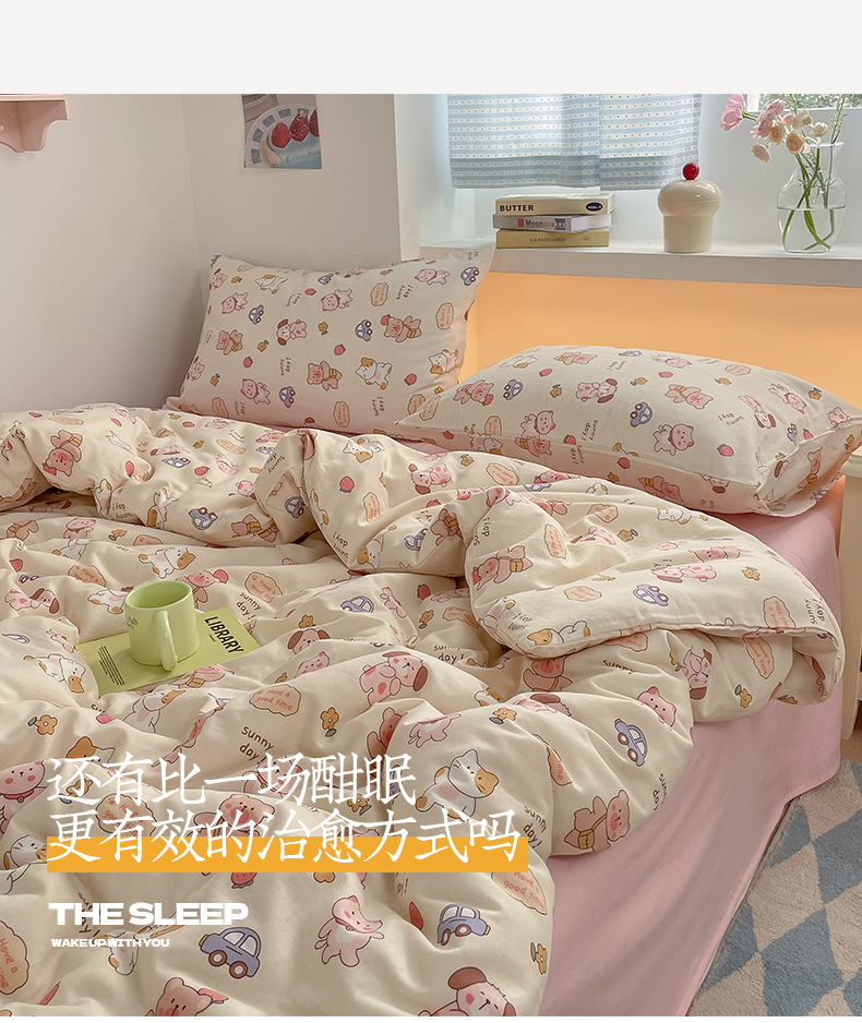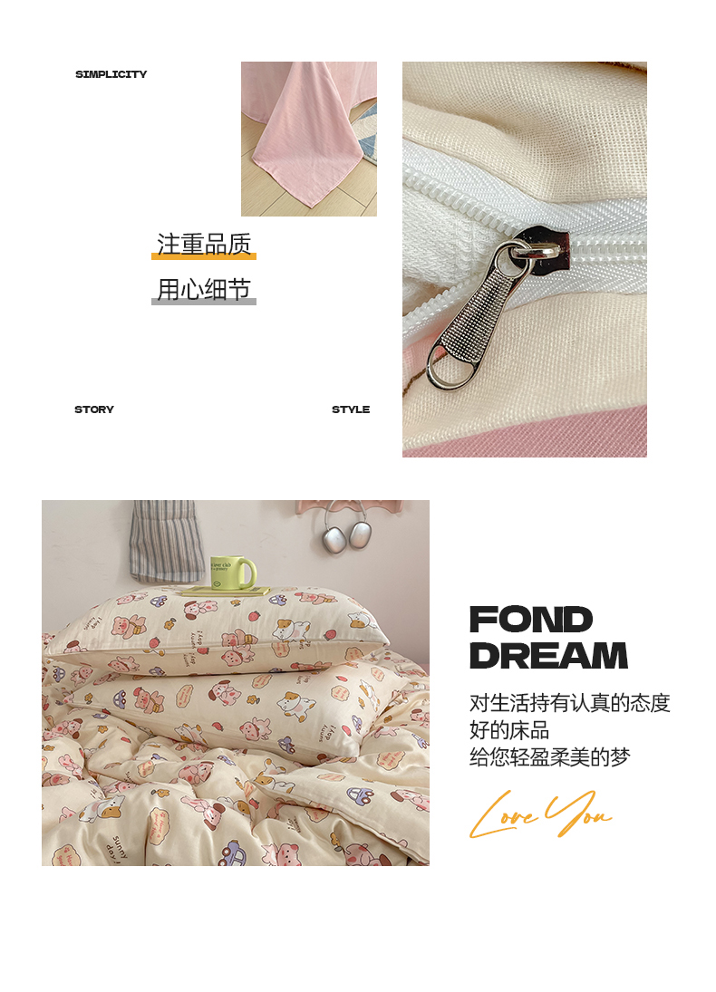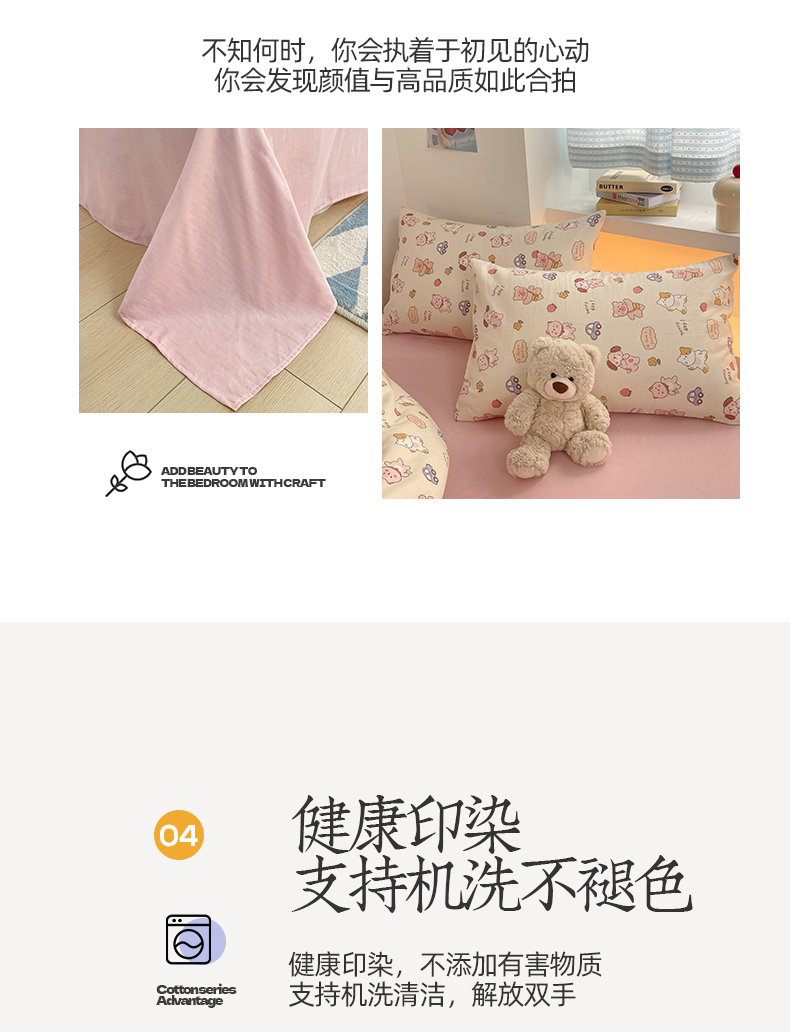 商品名称:桃子家居2025新款A类纯棉有氧双层纱小清新可爱少女系列四件套 棉双层纱-萌萌日记
