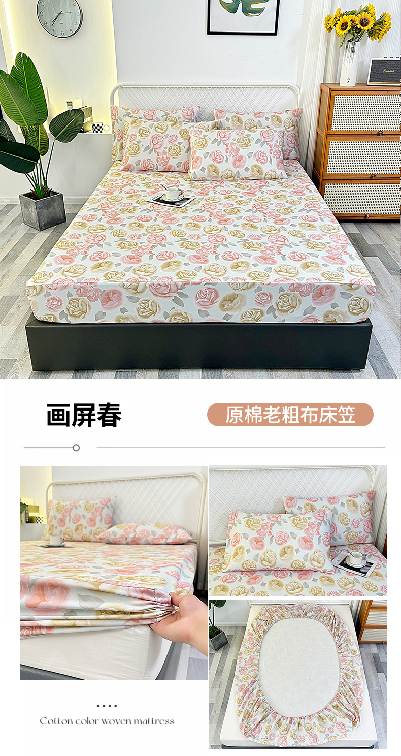 • 91家纺网 家纺一手货源 找家纺 伊而梦蚊帐 2025新款原棉老粗布床笠 画屏春
