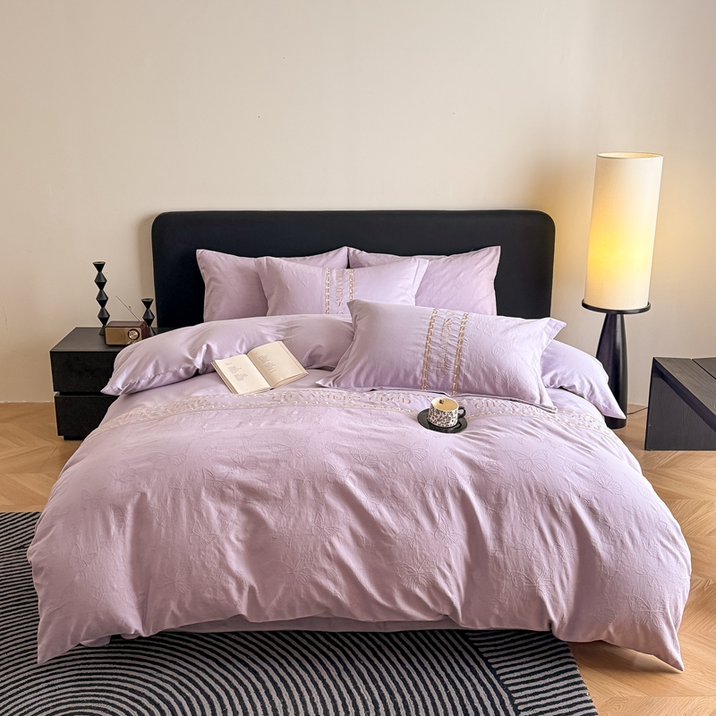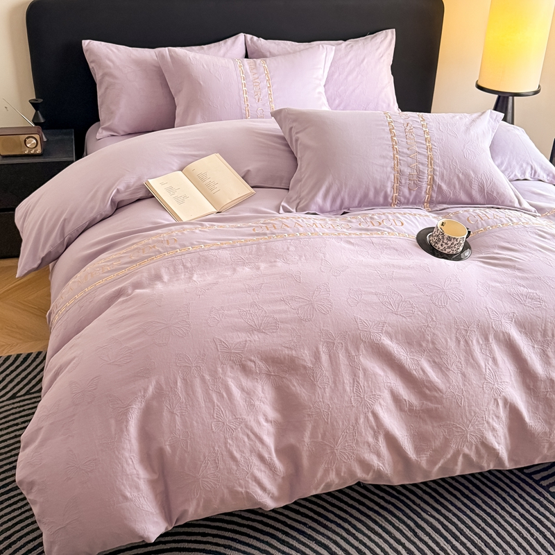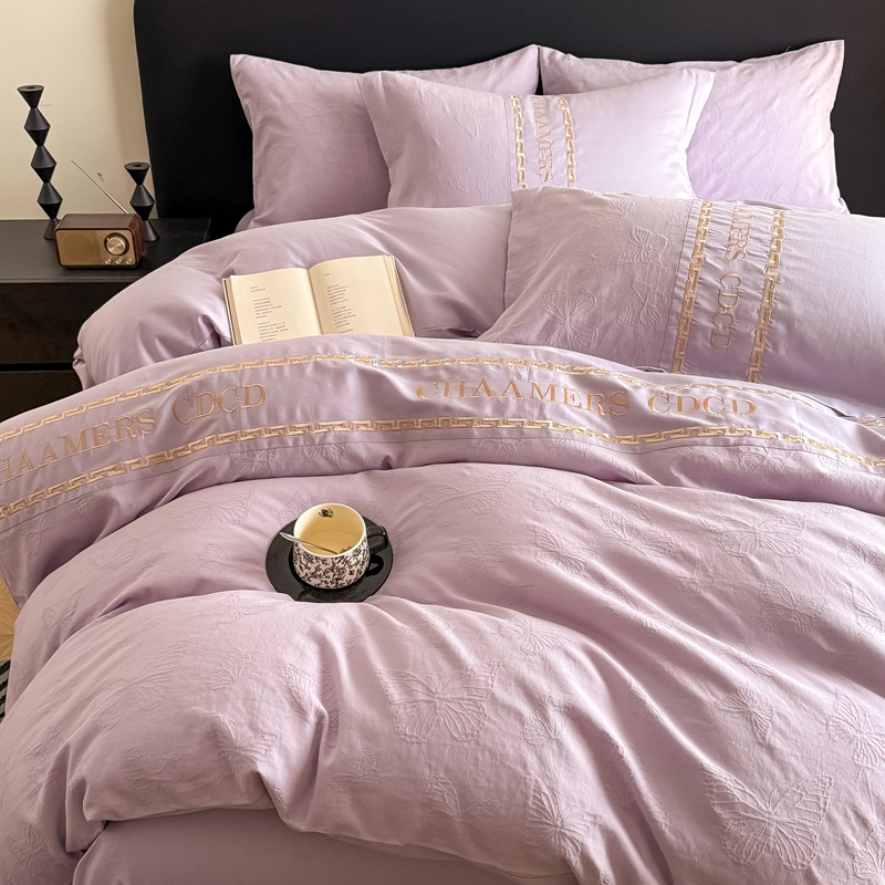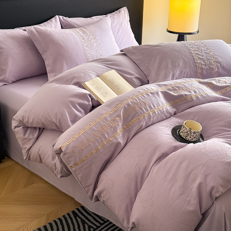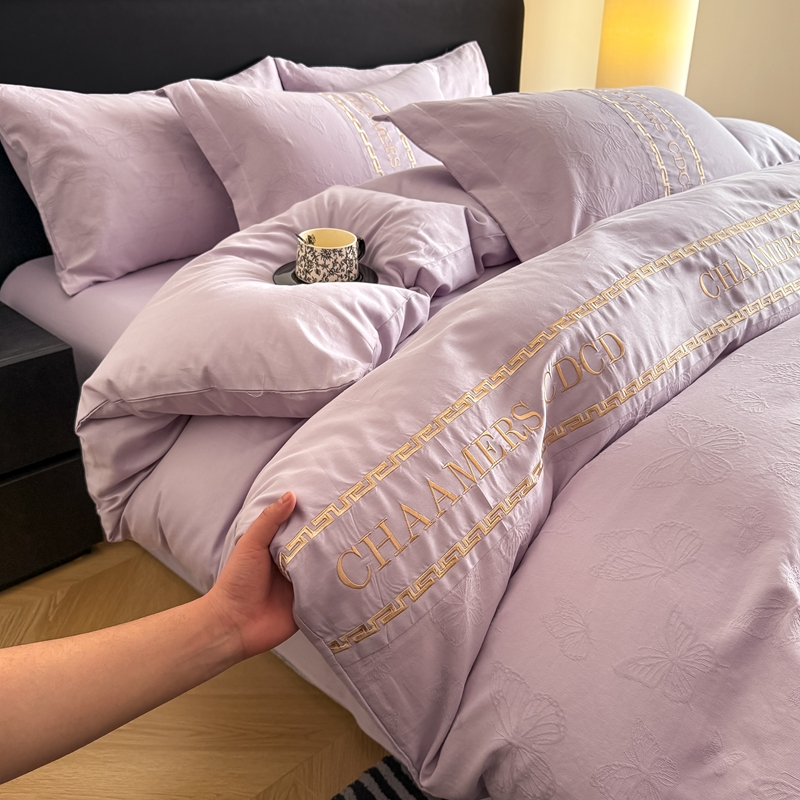 当前位置: 91家纺网 > 商品网购 > 床品套件 > 四件套 > 提花四件套 > 水云缦 2025新款全棉三层纱色织大提花四件套绣花拼接款 拼接绣花款-蝶舞-丁香紫