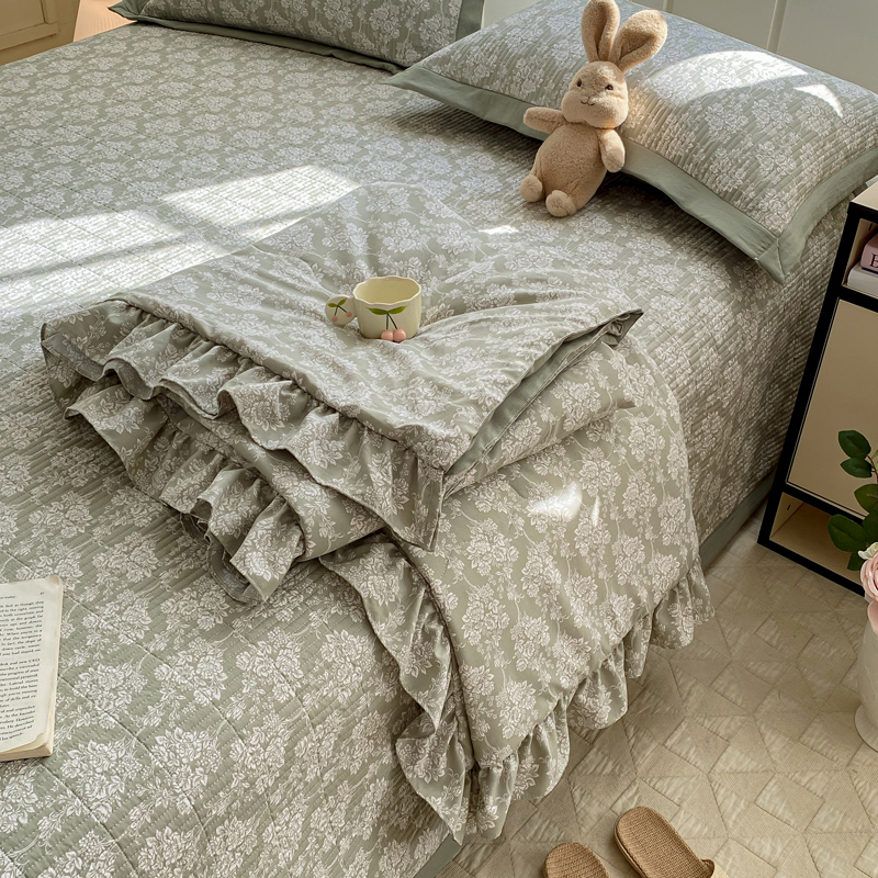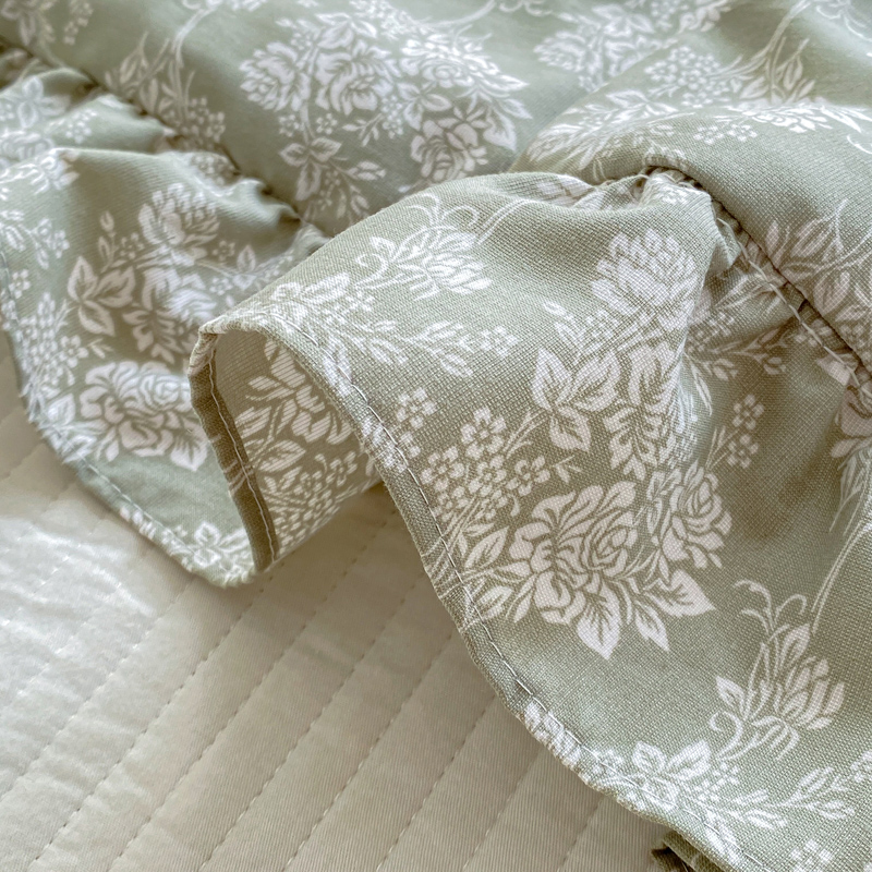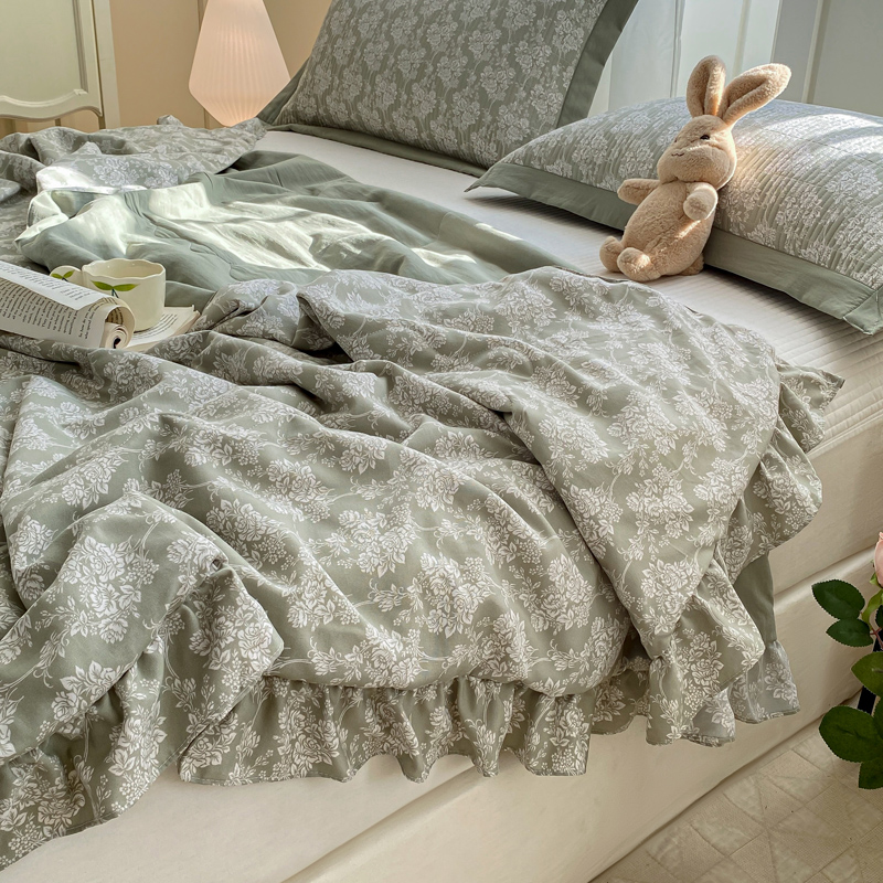 享受云端的柔软,是霎那间的心动~ 面料超软糯、、绗缝设计不易跑棉,贴身柔软又舒适,告别床单的褶皱与烦恼,法式小碎花。享受视觉的美感。沉浸式的入睡,仿佛进了森林氧吧。采用整张超细中空纤维棉 久用不板结 无甲醛,无芳香胺。婴幼儿可用