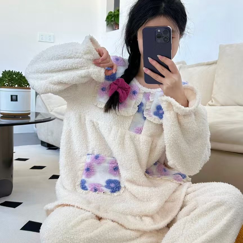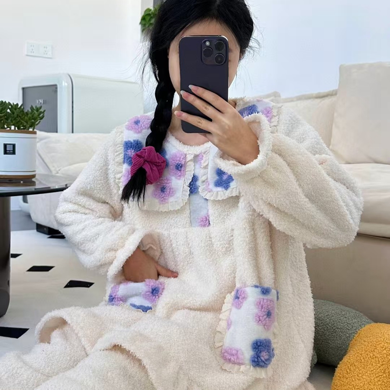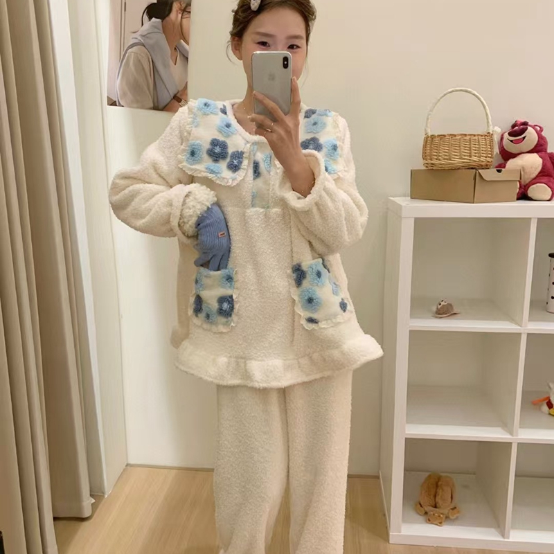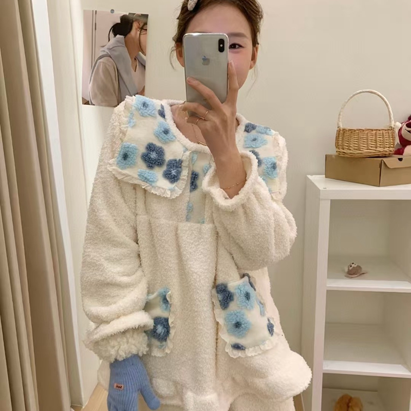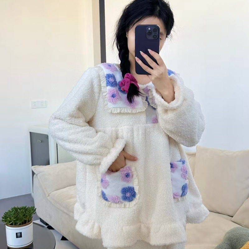 当前位置: 91家纺网 > 商品网购 > 居家日用 > 睡衣/家居服套装 > (总)妍景家居生活馆 韩系拼接大翻领套装家居服