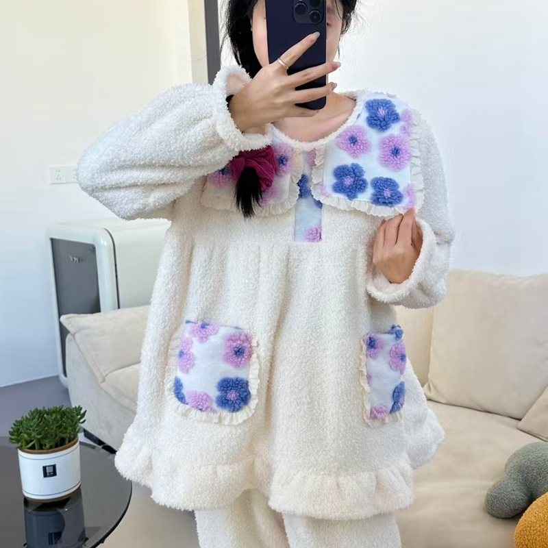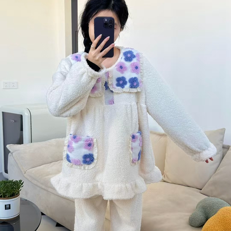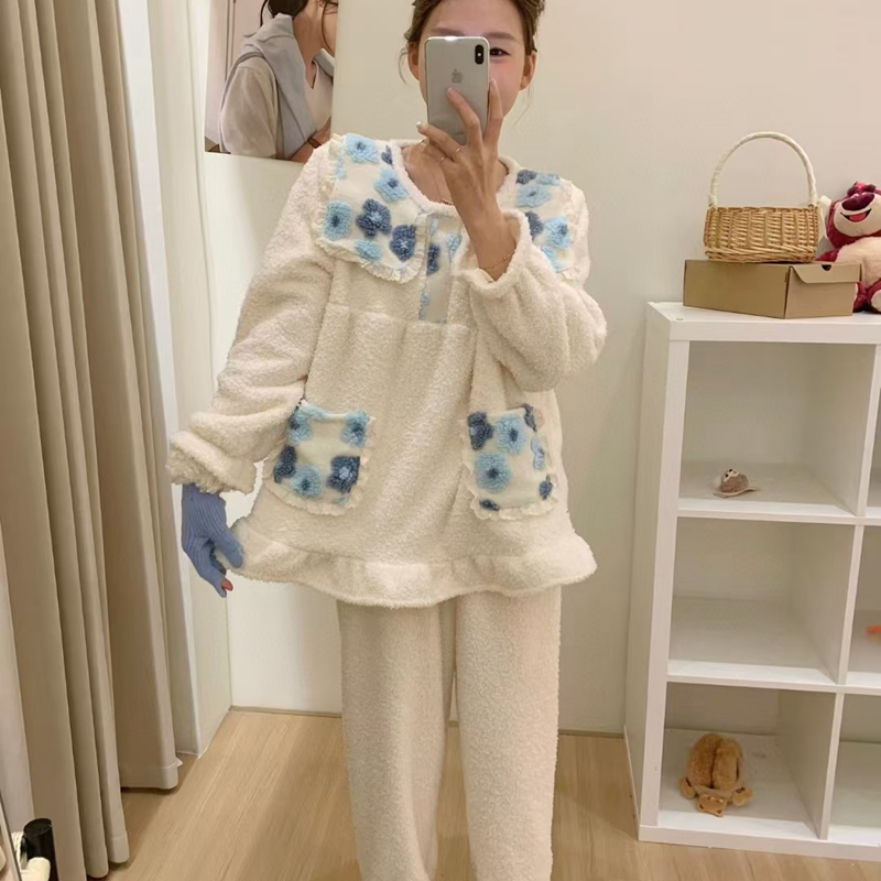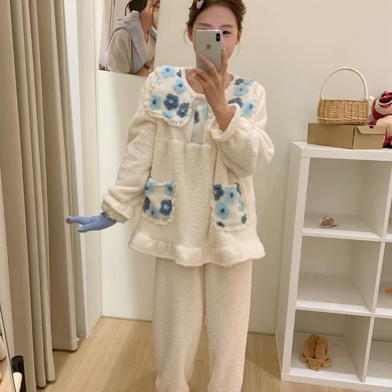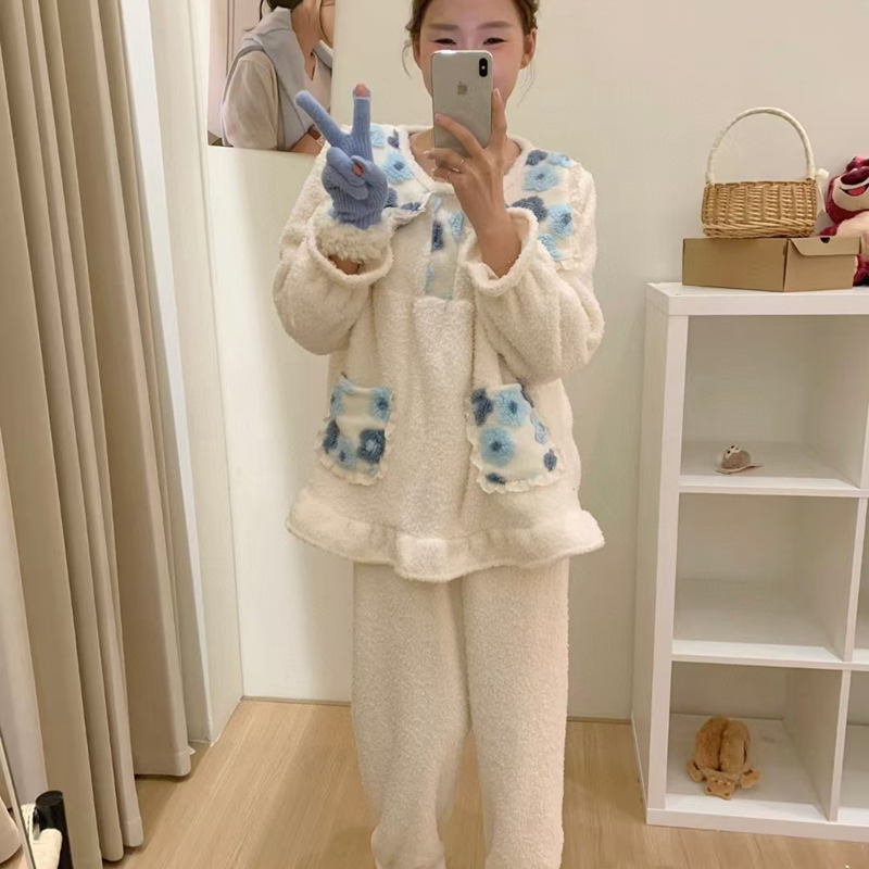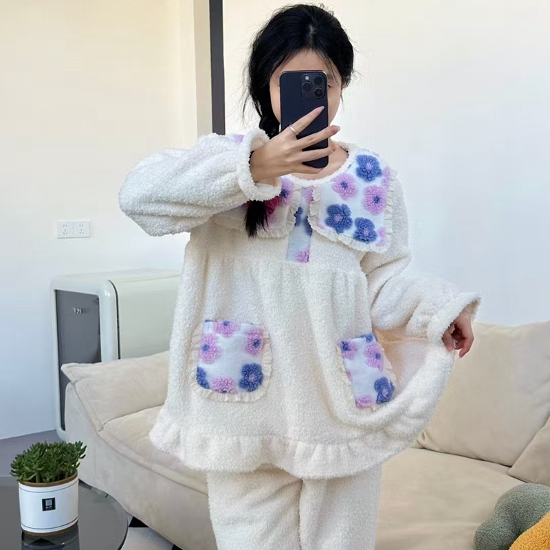 当前位置: 91家纺网 > 商品网购 > 居家日用 > 睡衣/家居服套装 > (总)妍景家居生活馆 韩系拼接大翻领套装家居服