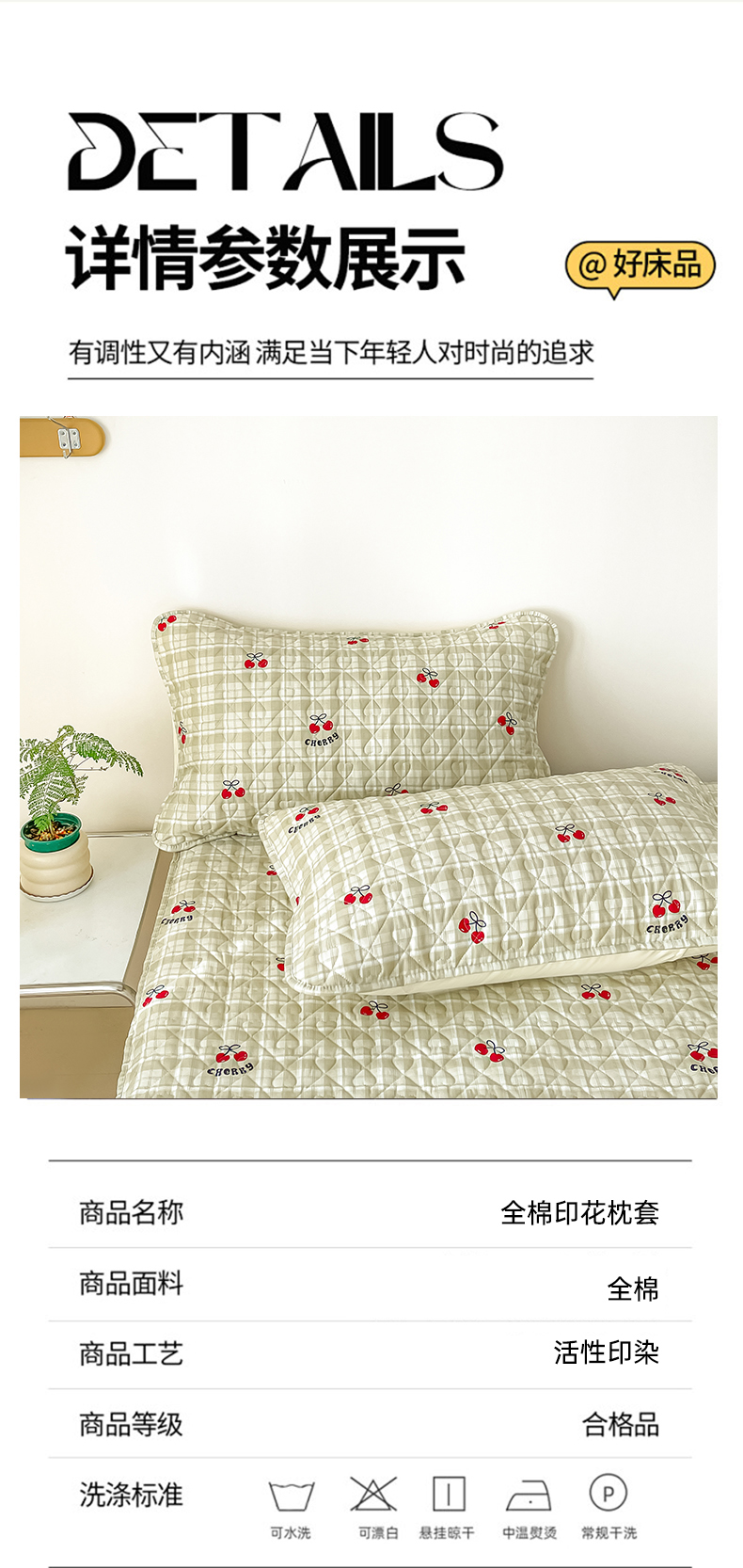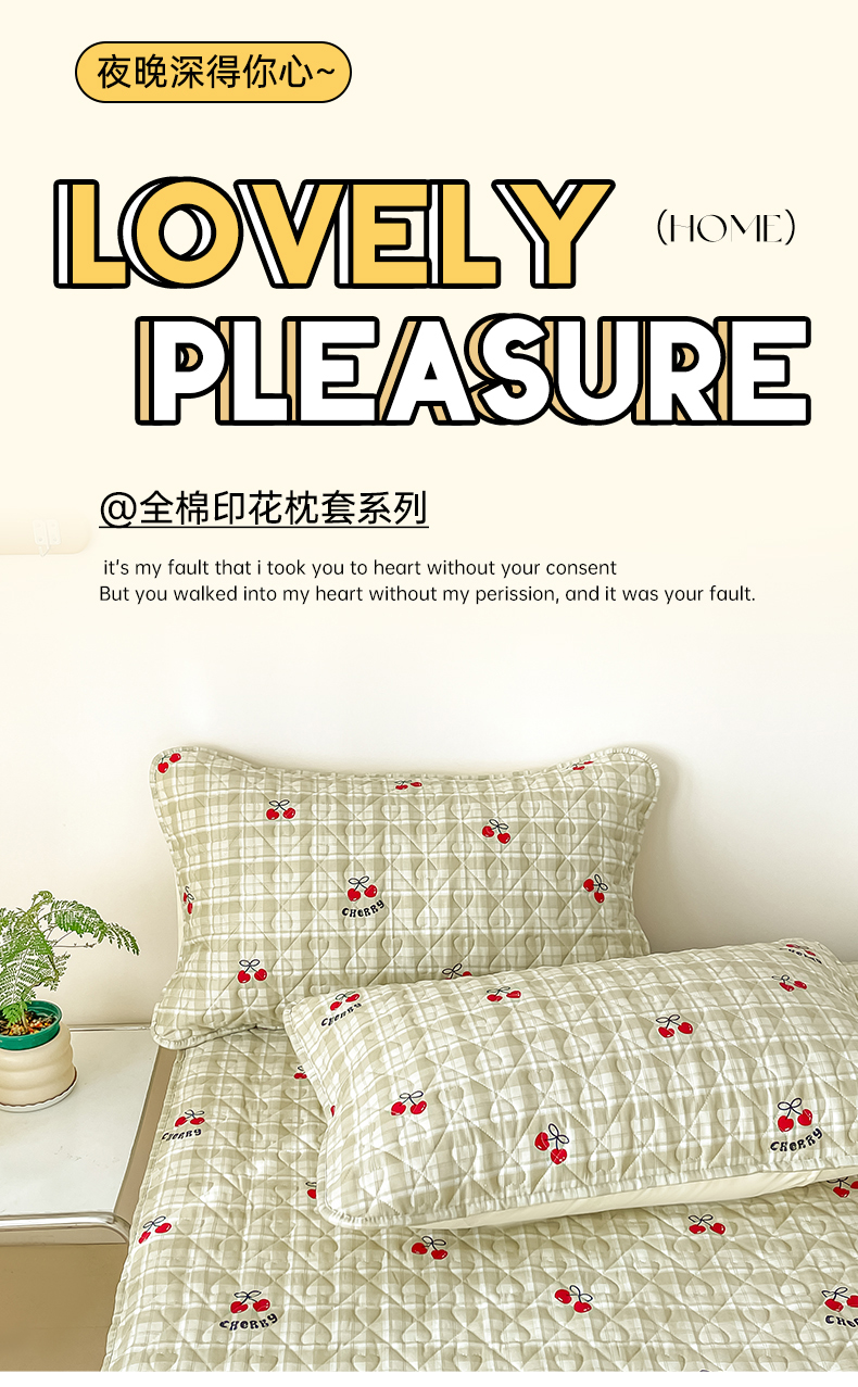 禧缘家纺 2025新款全棉印花枕套 浪漫樱桃