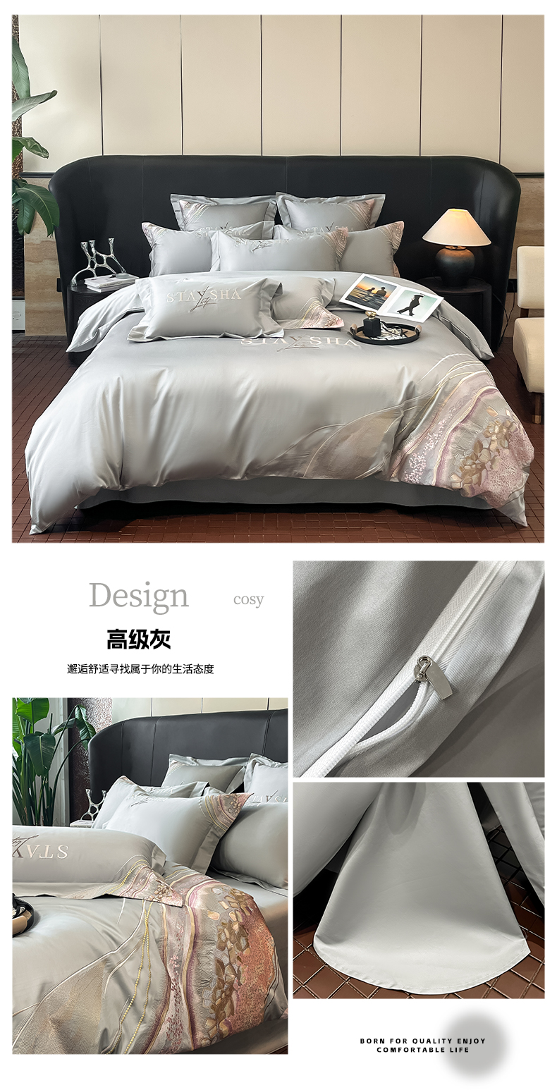 博纳家纺 2025新款纯棉绣花四件套—琉璃 高级灰