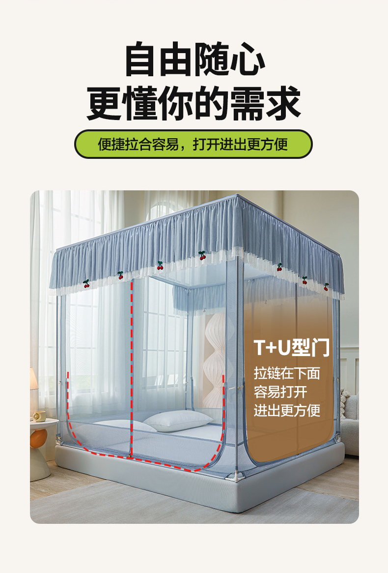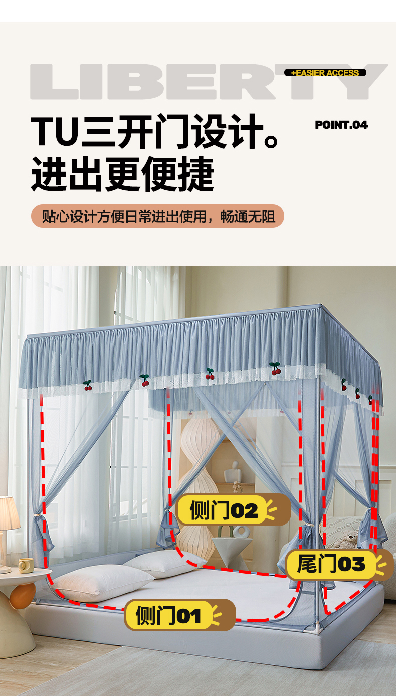 商品名称:(总)青竹苑2025新款花边款床笠底防摔坐床蚊帐-樱桃