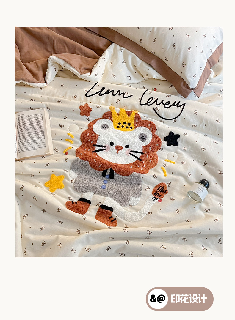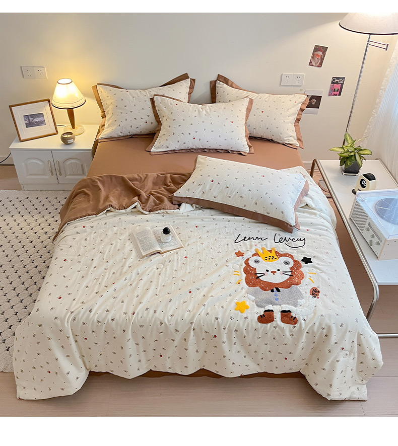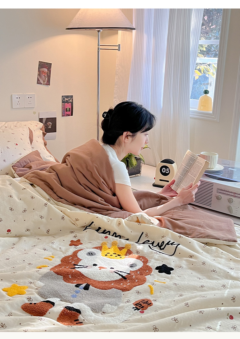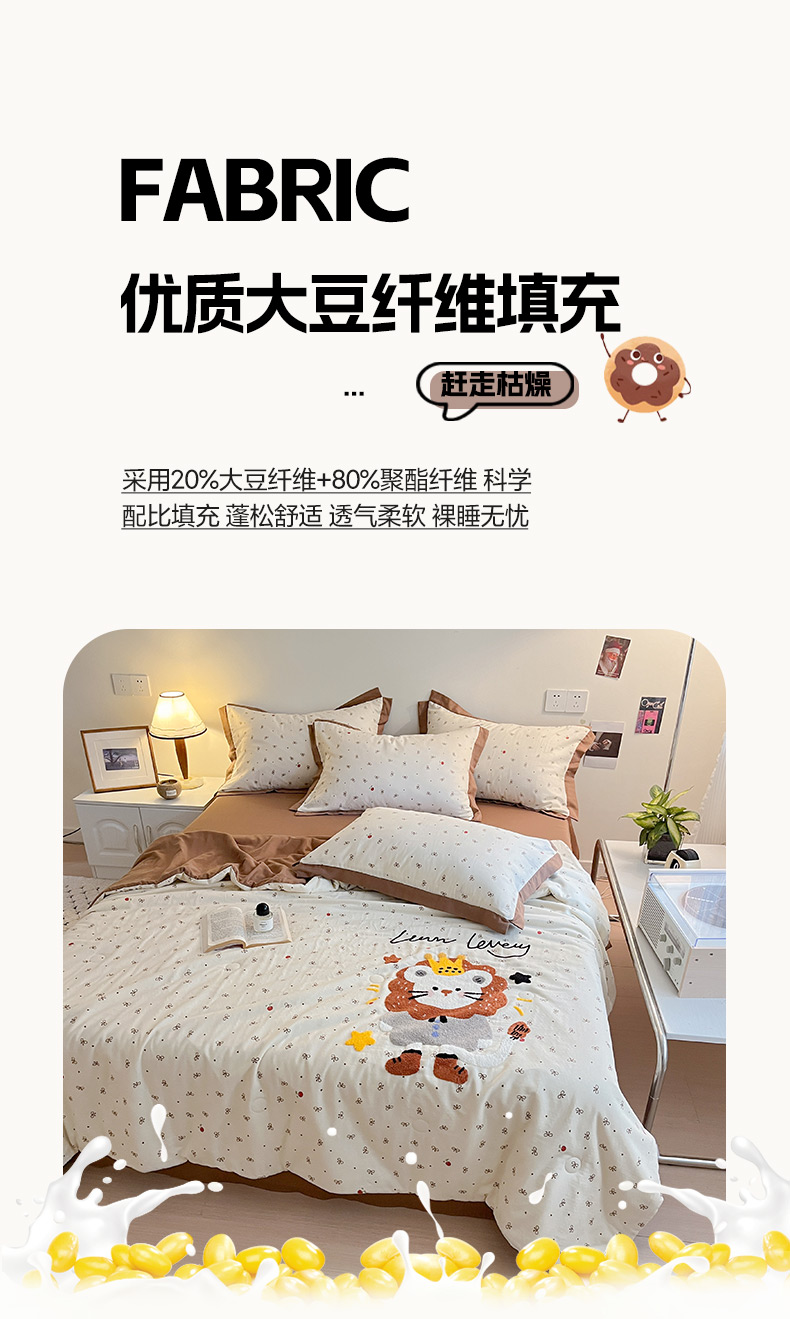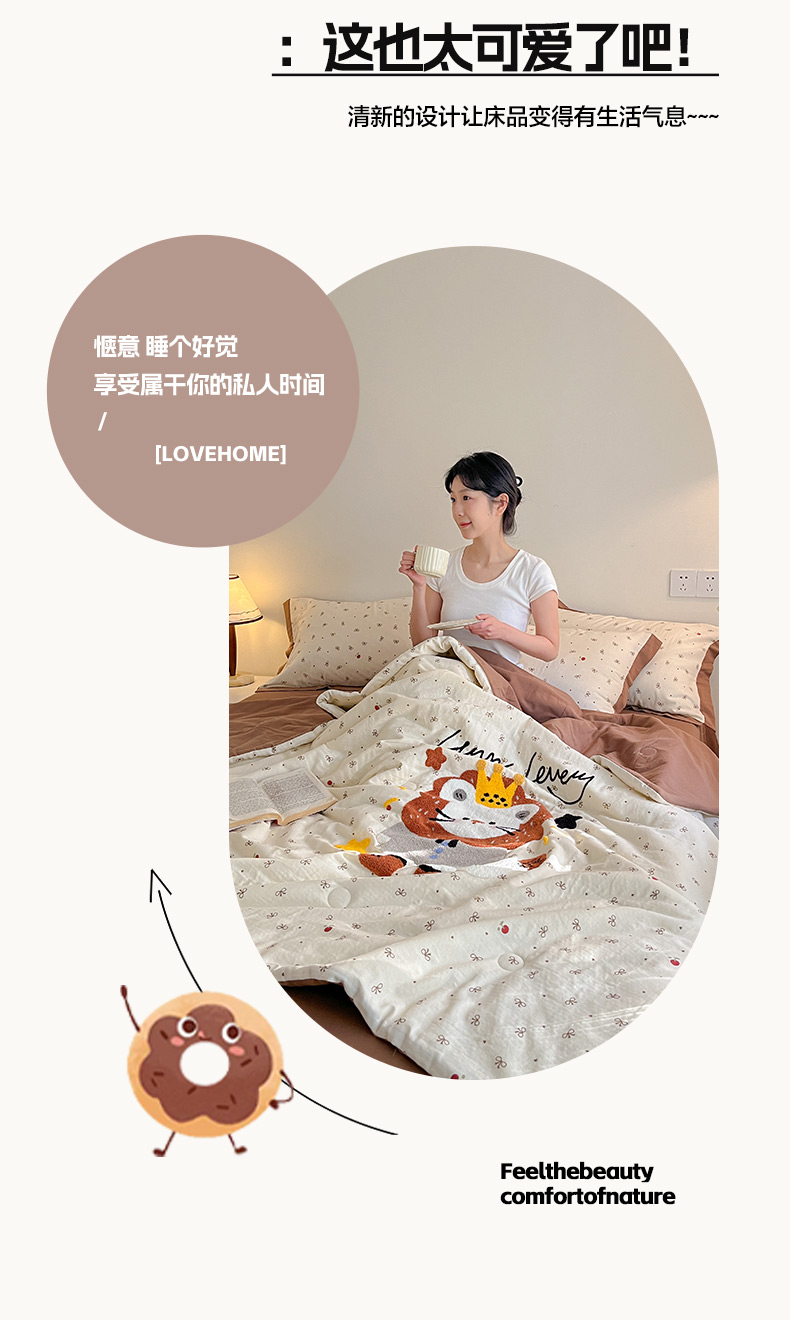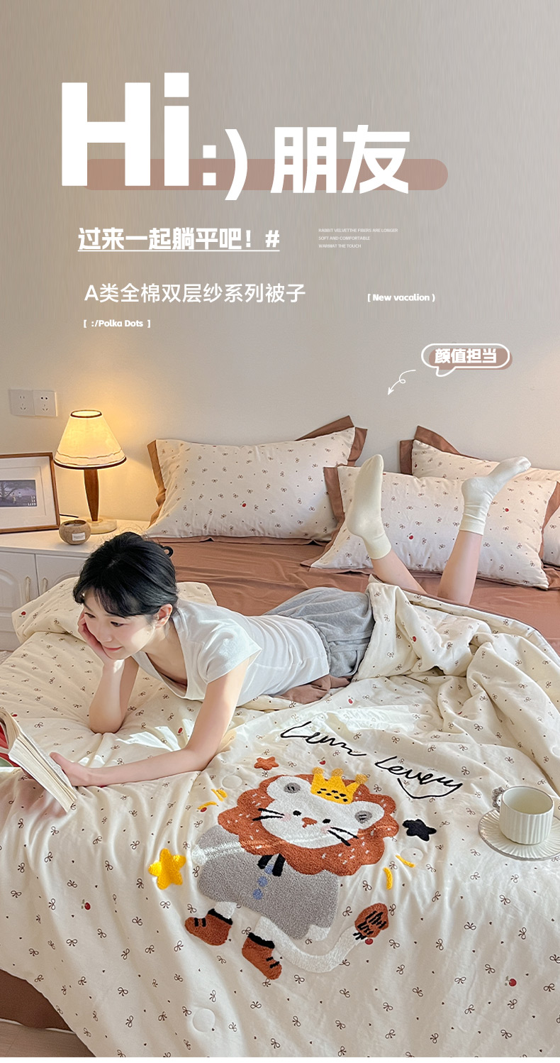 • 91家纺网 家纺一手货源 找家纺 宇航家纺 2025新款全棉双层纱大豆被夏被春秋被单品四件套 小狮子