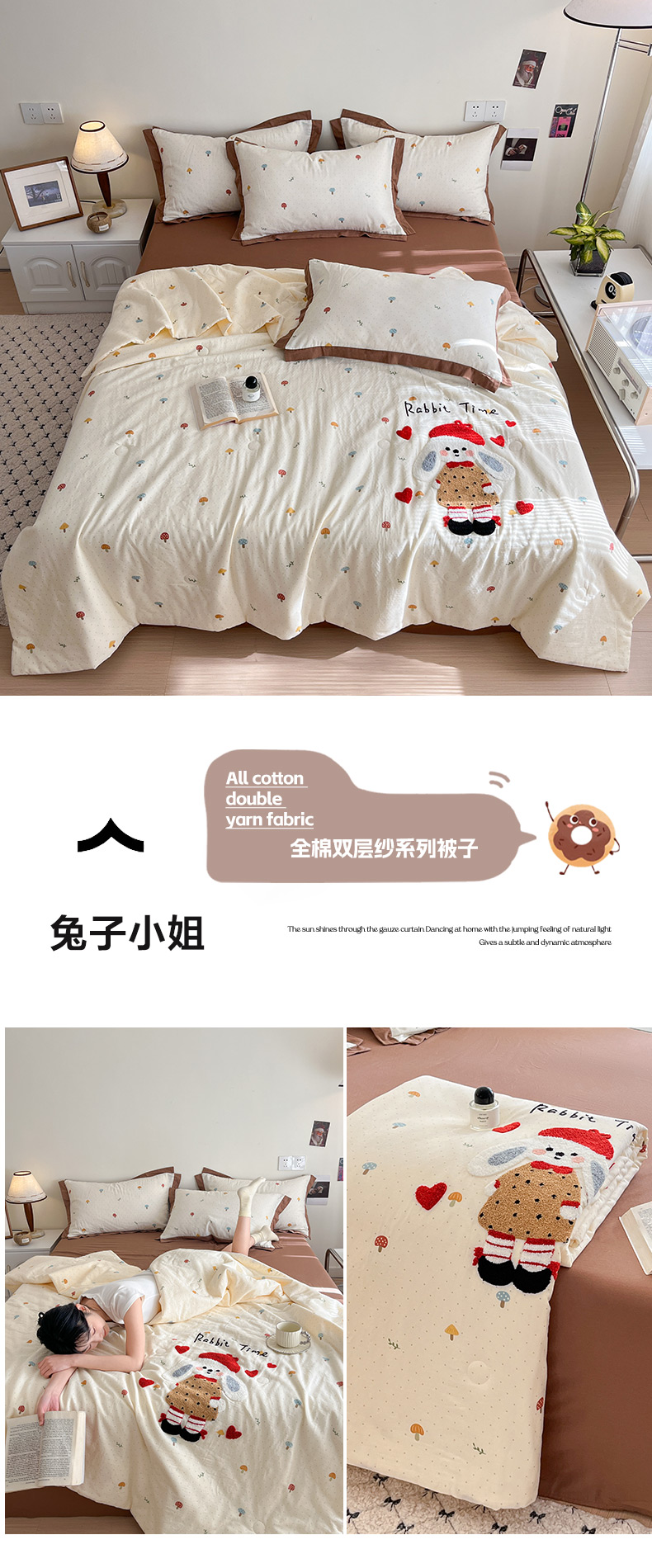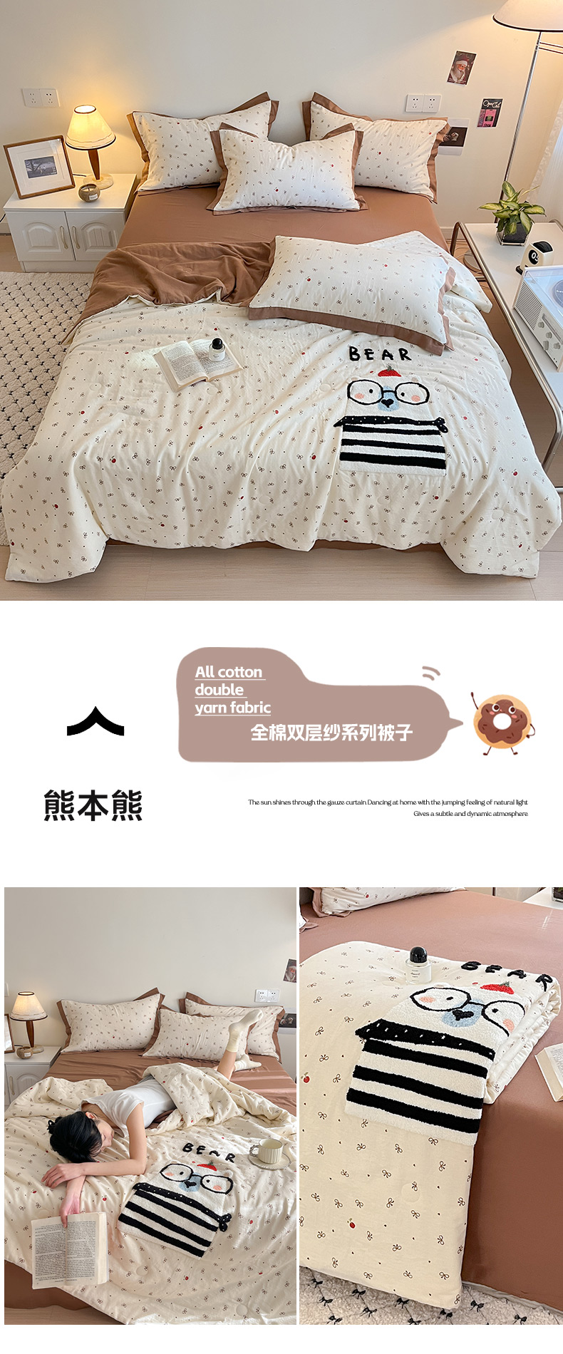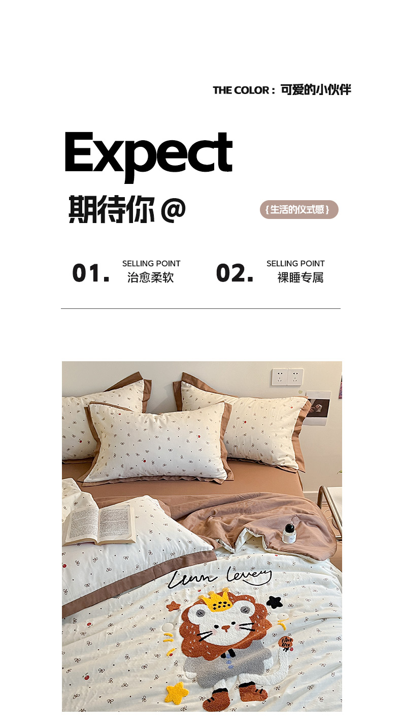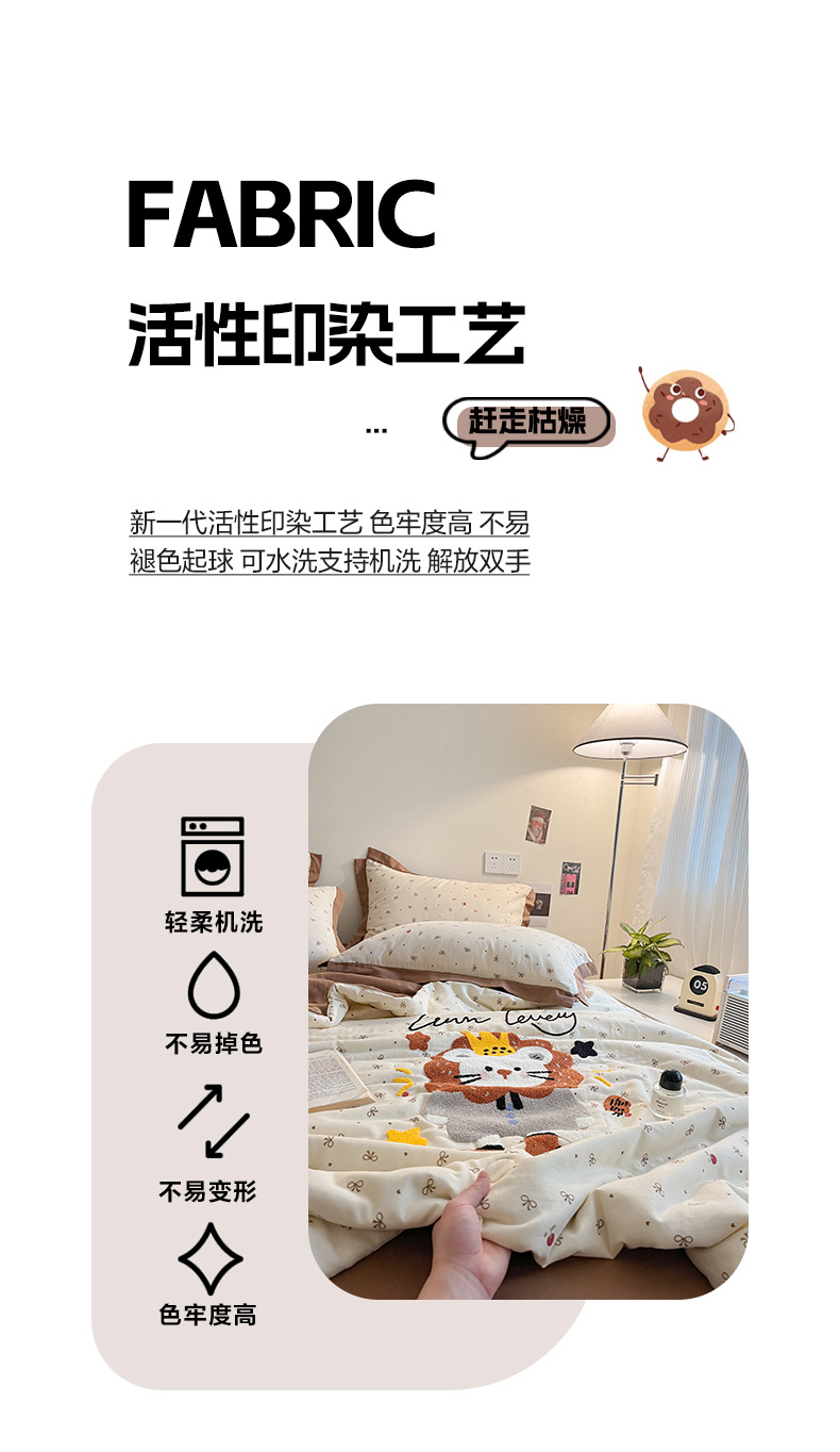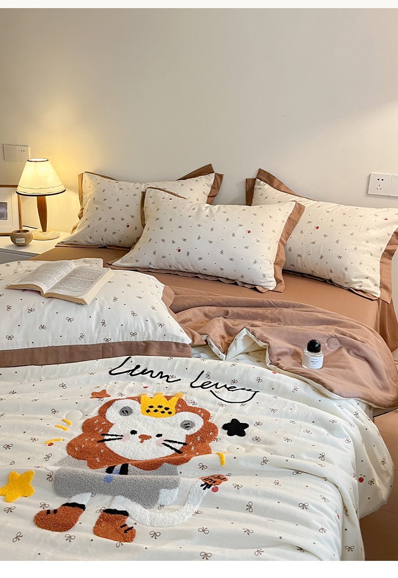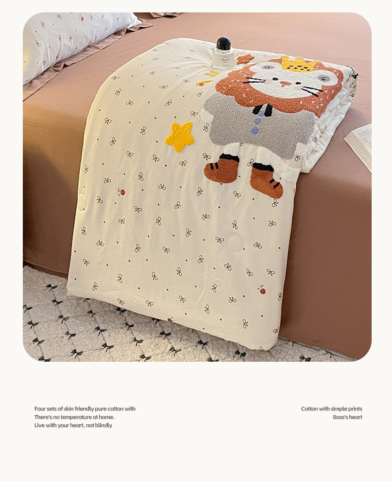 • 91家纺网 家纺一手货源 找家纺 宇航家纺 2025新款全棉双层纱大豆被夏被春秋被单品四件套 小狮子