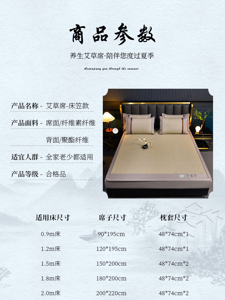 当前位置: 91家纺网 > 商品网购 > 床上用品 > 凉席 > 藤席 > 小牛席业 2025新款加厚款-经典艾草养生席(床笠款)凉席藤席冰藤席冰丝席竹席草席空调席乳胶席豆豆席 艾草养生席-床笠款-亚麻