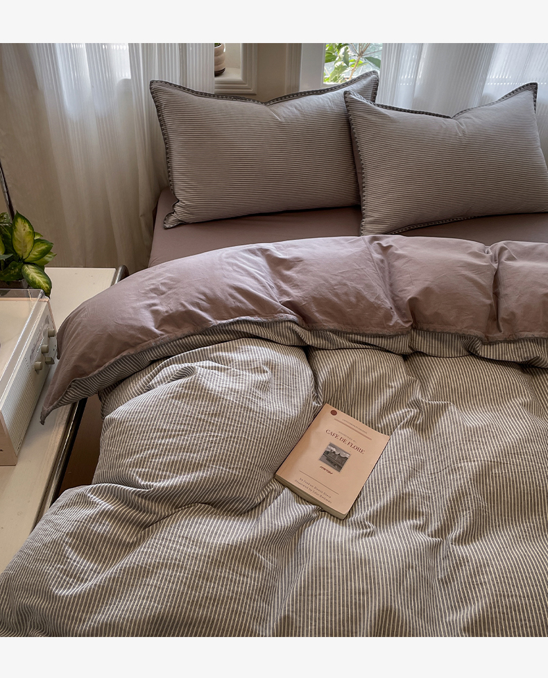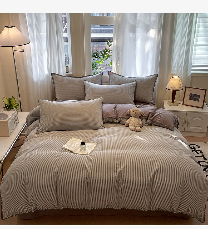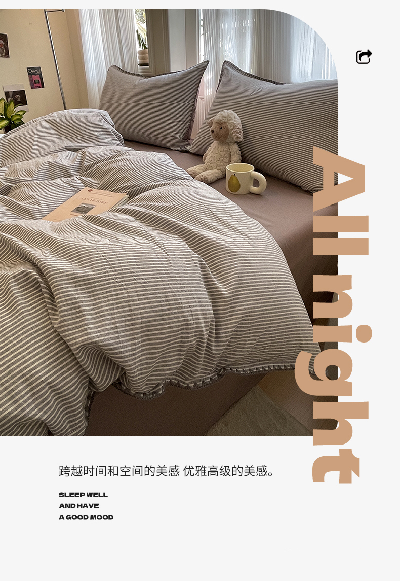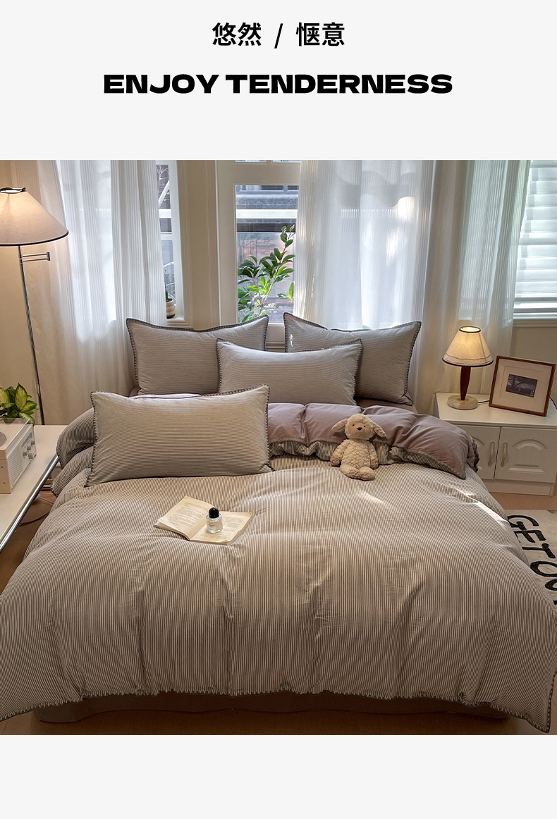 蓝邻家纺 2025年新款全棉水洗棉贝壳边四件套系列 佐伊灰