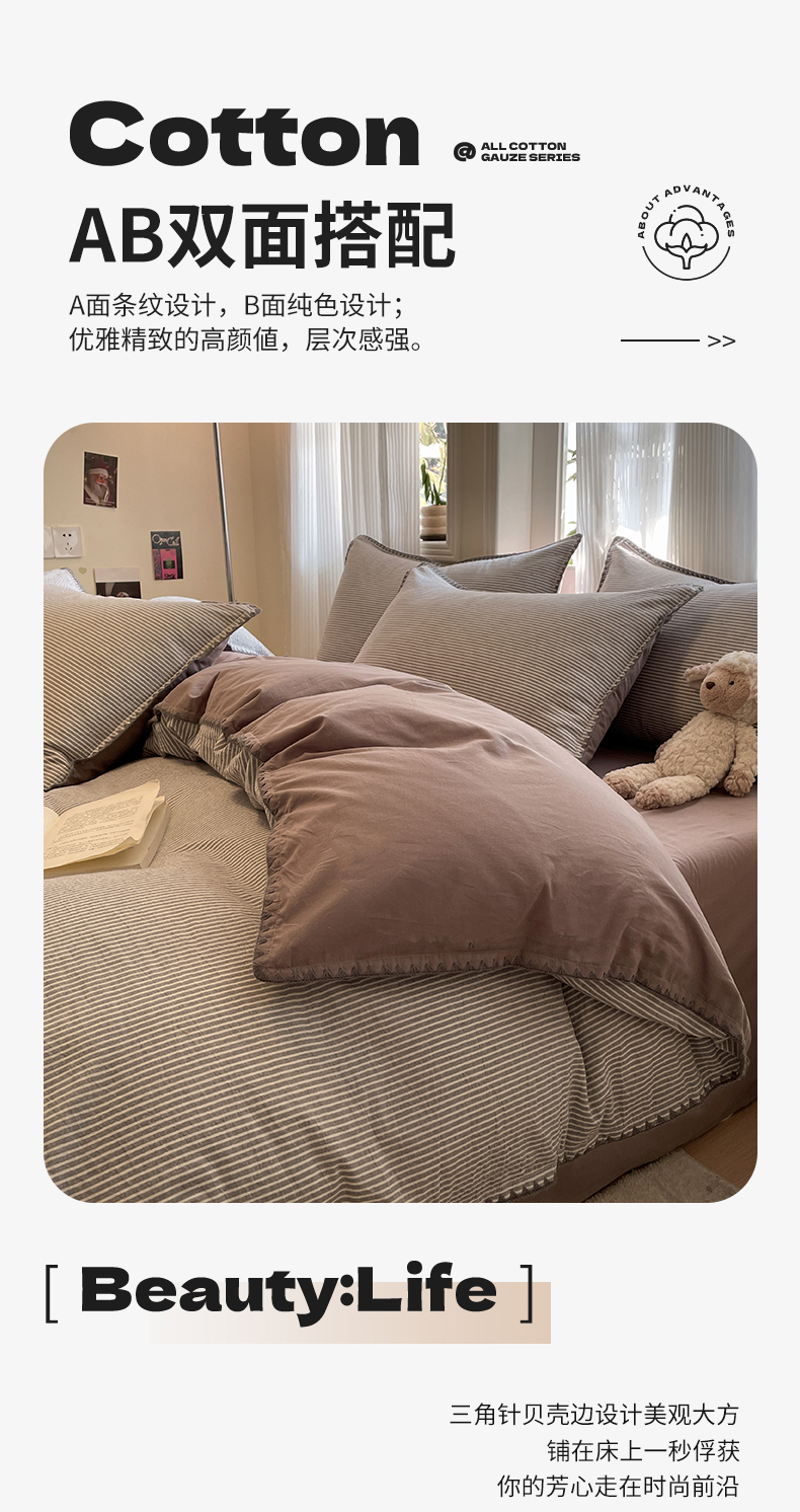 (总)蓝邻家纺 2025新款色织三层纱磨毛四件套系列,洛丽塔-灰,洛丽塔-米,摩登深林-兰,叶茂-咖,叶茂-深灰,长夏-桔咖,长夏-深蓝