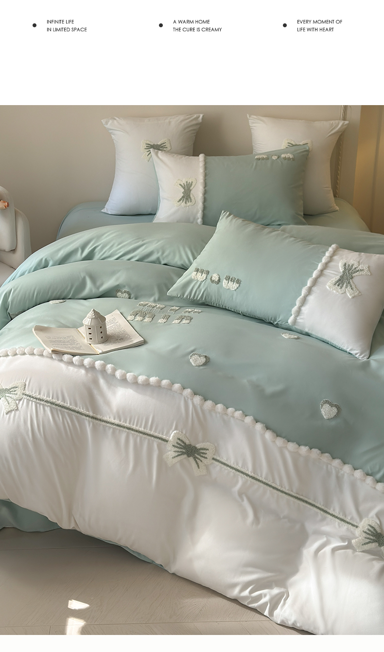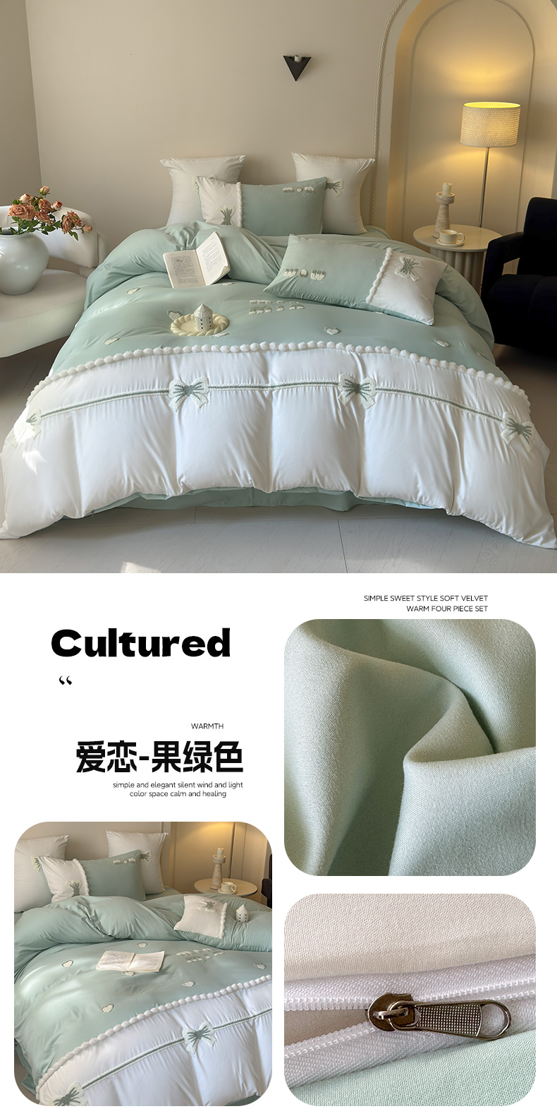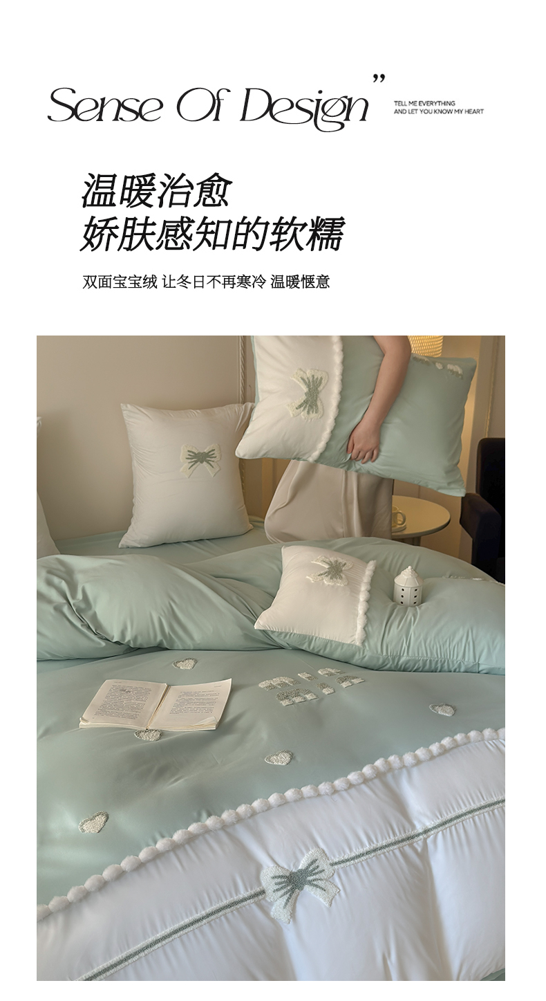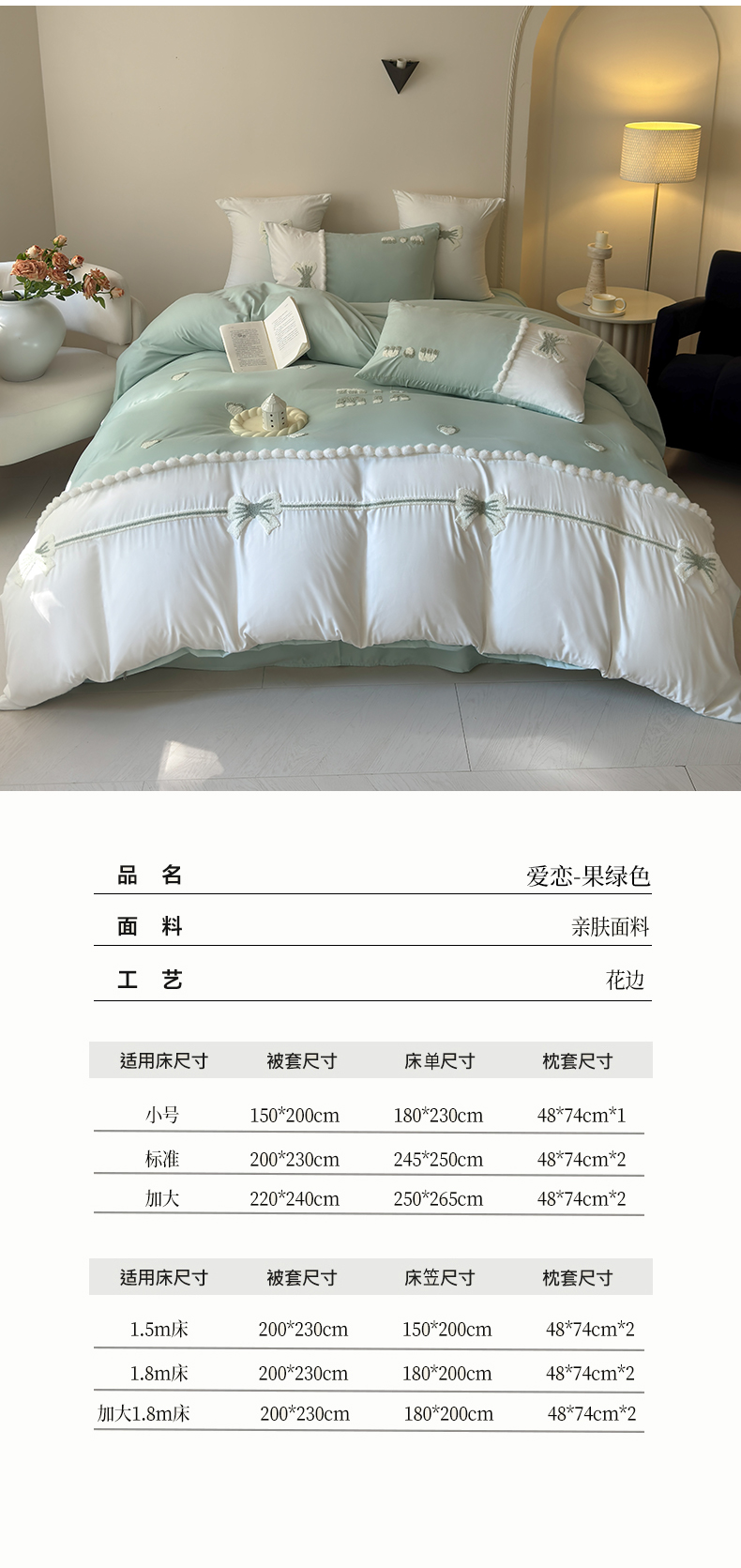 当前位置: 91家纺网 > 商品网购 > 床品套件 > 四件套 > 毛巾绣四件套 > 豪美鑫2025新款柔肤棉毛巾绣公主风爱恋四件套系列 爱恋-果绿色