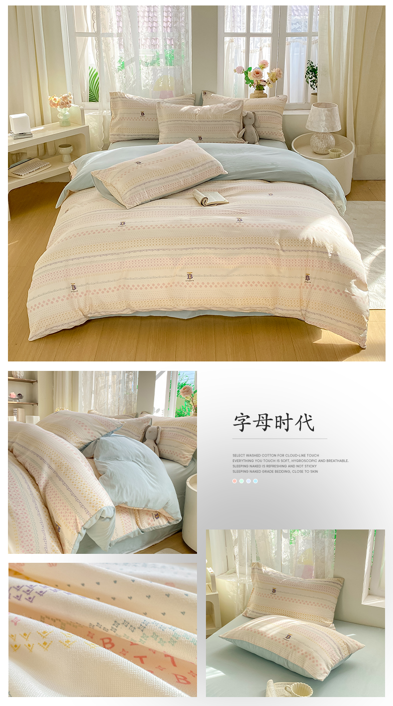 商品名称:牛牛家纺 2025新款有氧针织双层纱四件套 字母时代