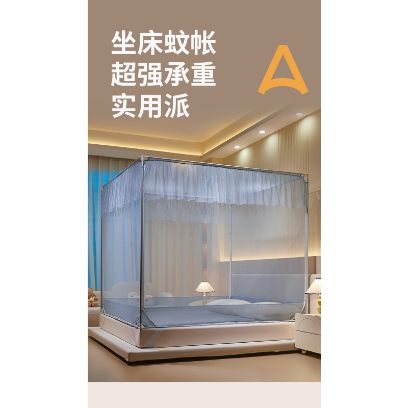 卓尔居2025新款A类防蚊绗绣编织防摔坐床蚊帐 夏至-浅蓝