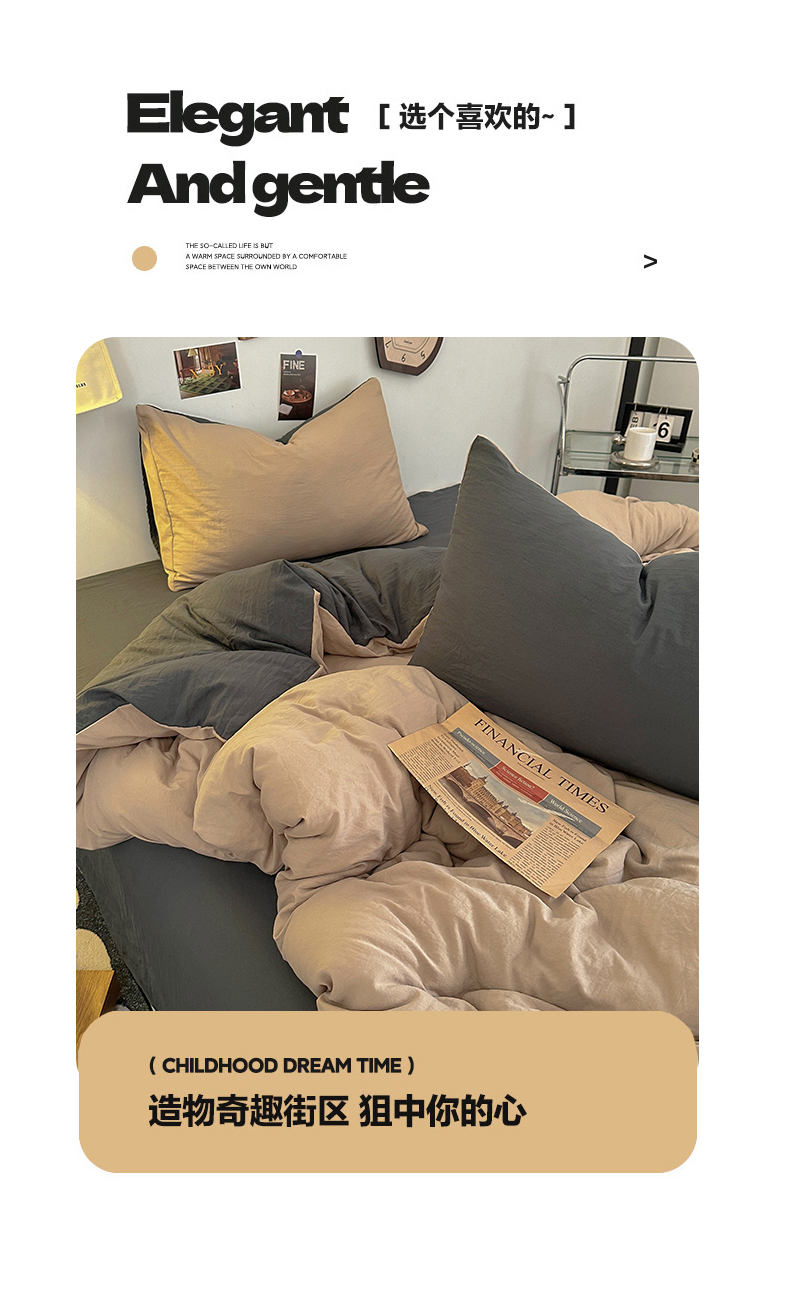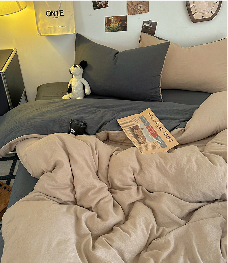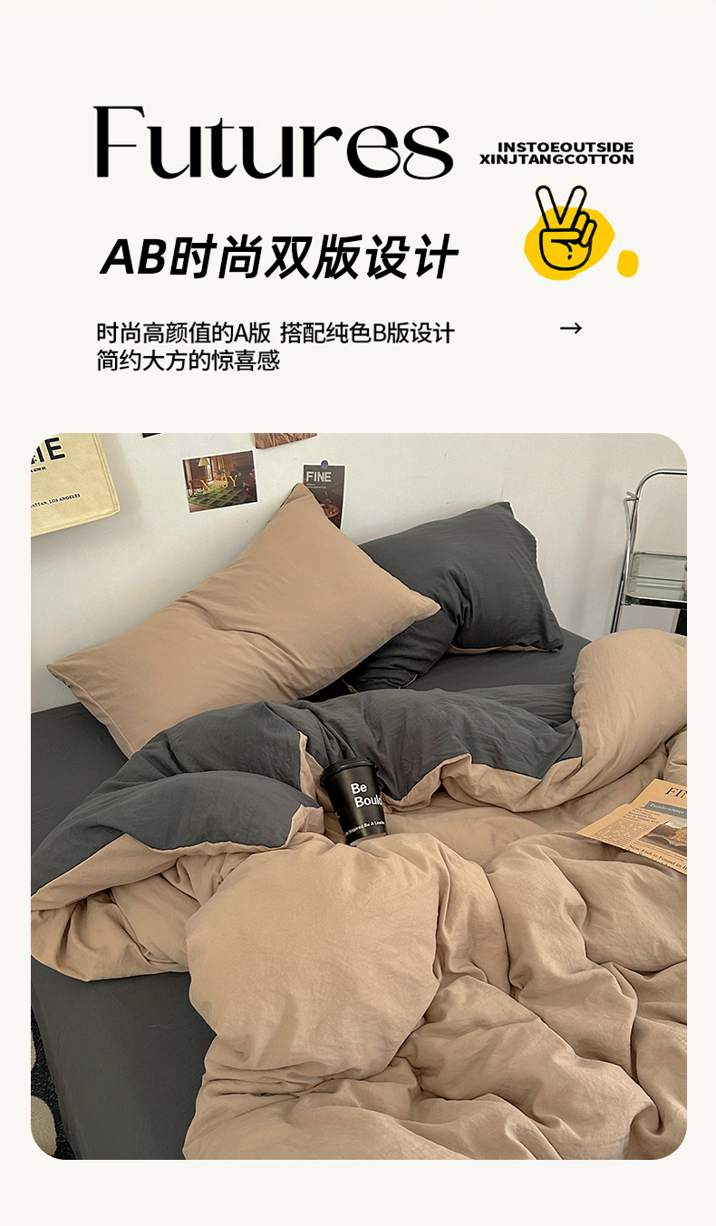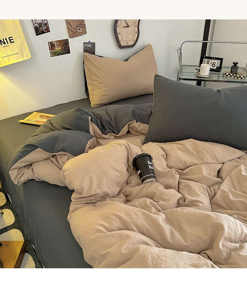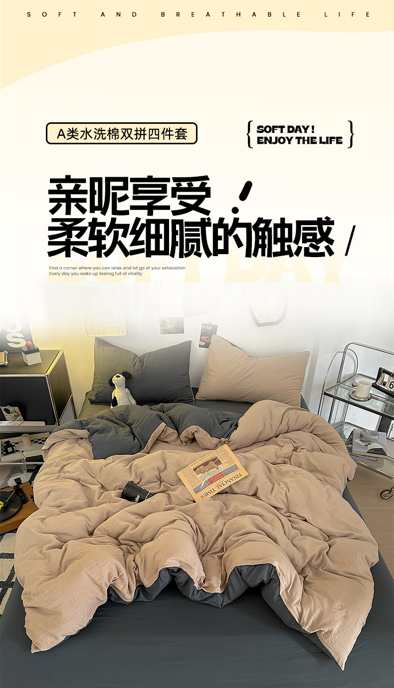 当前位置: 91家纺网 > 商品网购 > 床品套件 > 四件套 > 水洗棉四件套 > 耀达家居 2025新款纯色A类水洗棉双拼四件套 奶茶灰