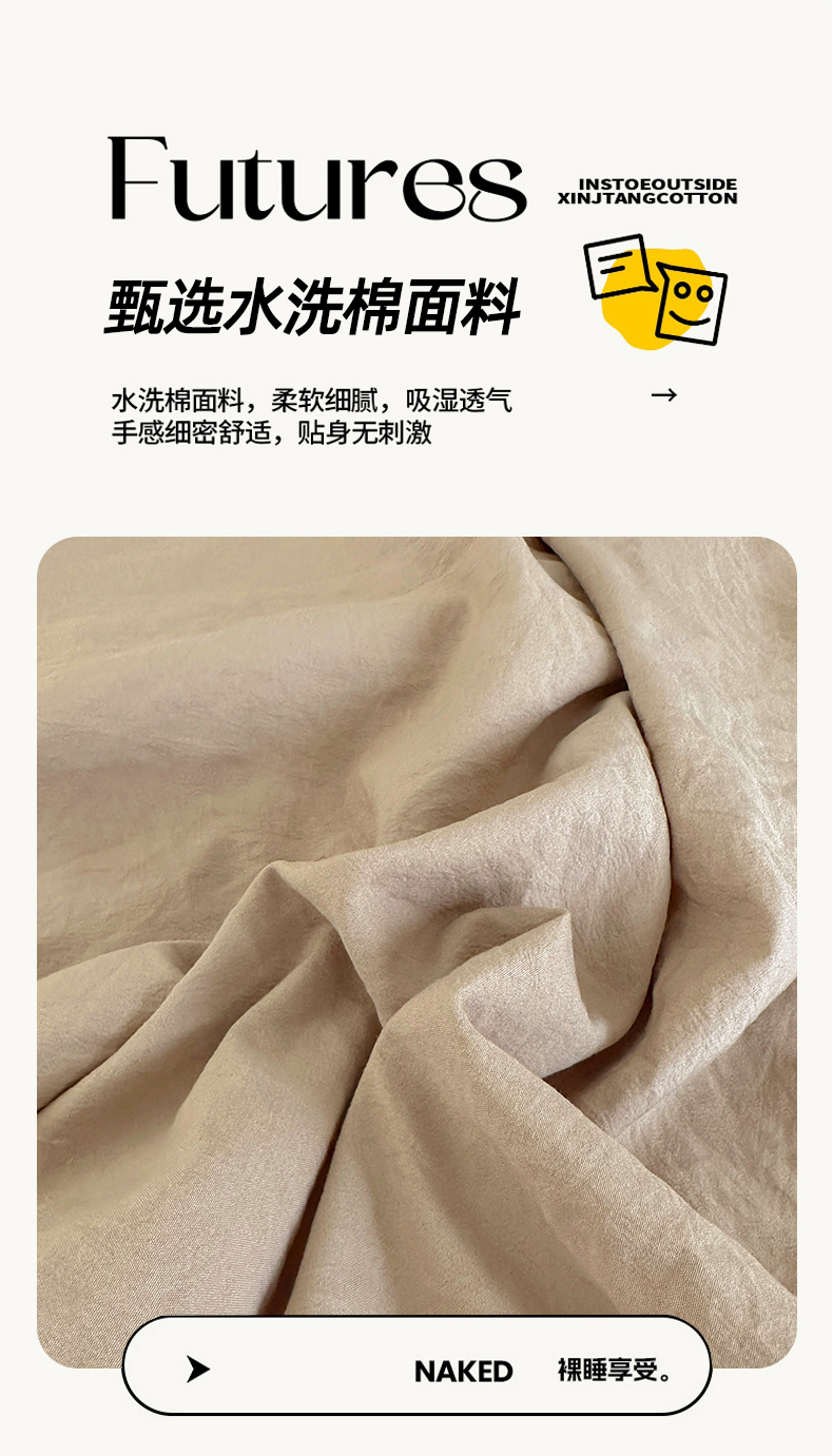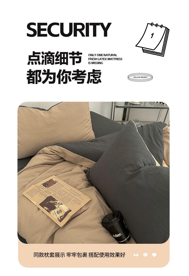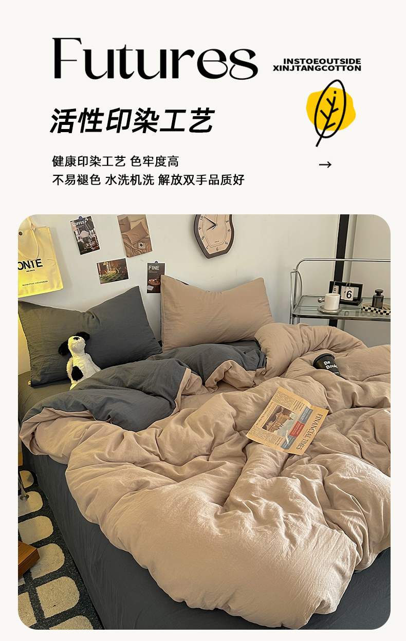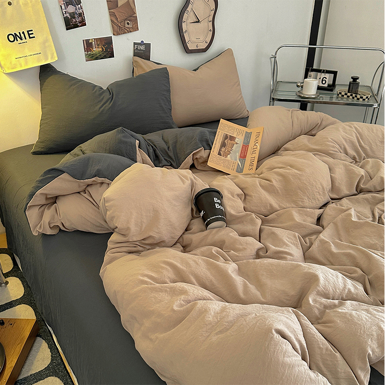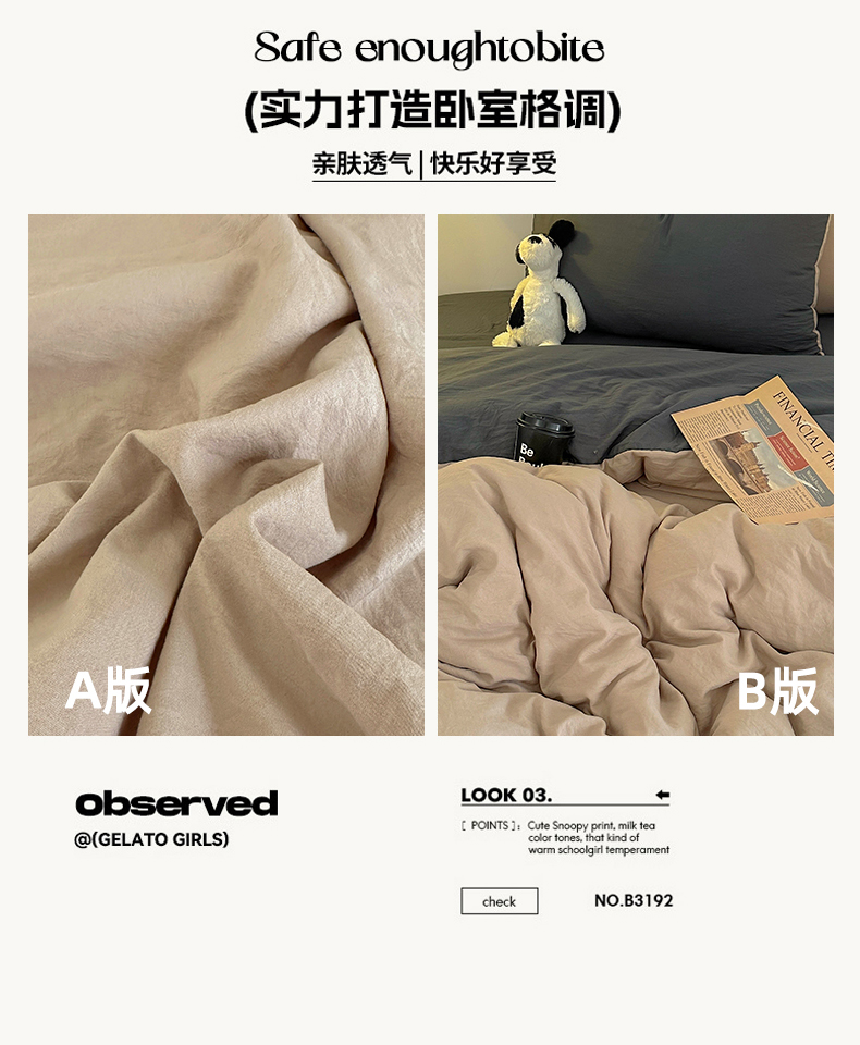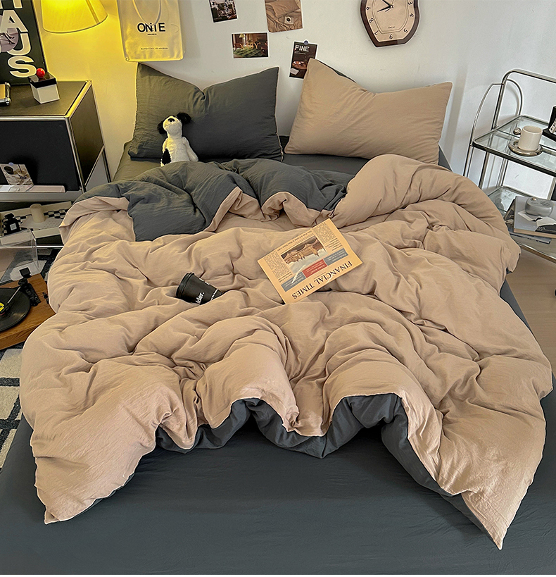 当前位置: 91家纺网 > 商品网购 > 床品套件 > 四件套 > 水洗棉四件套 > 耀达家居 2025新款纯色A类水洗棉双拼四件套 奶茶灰