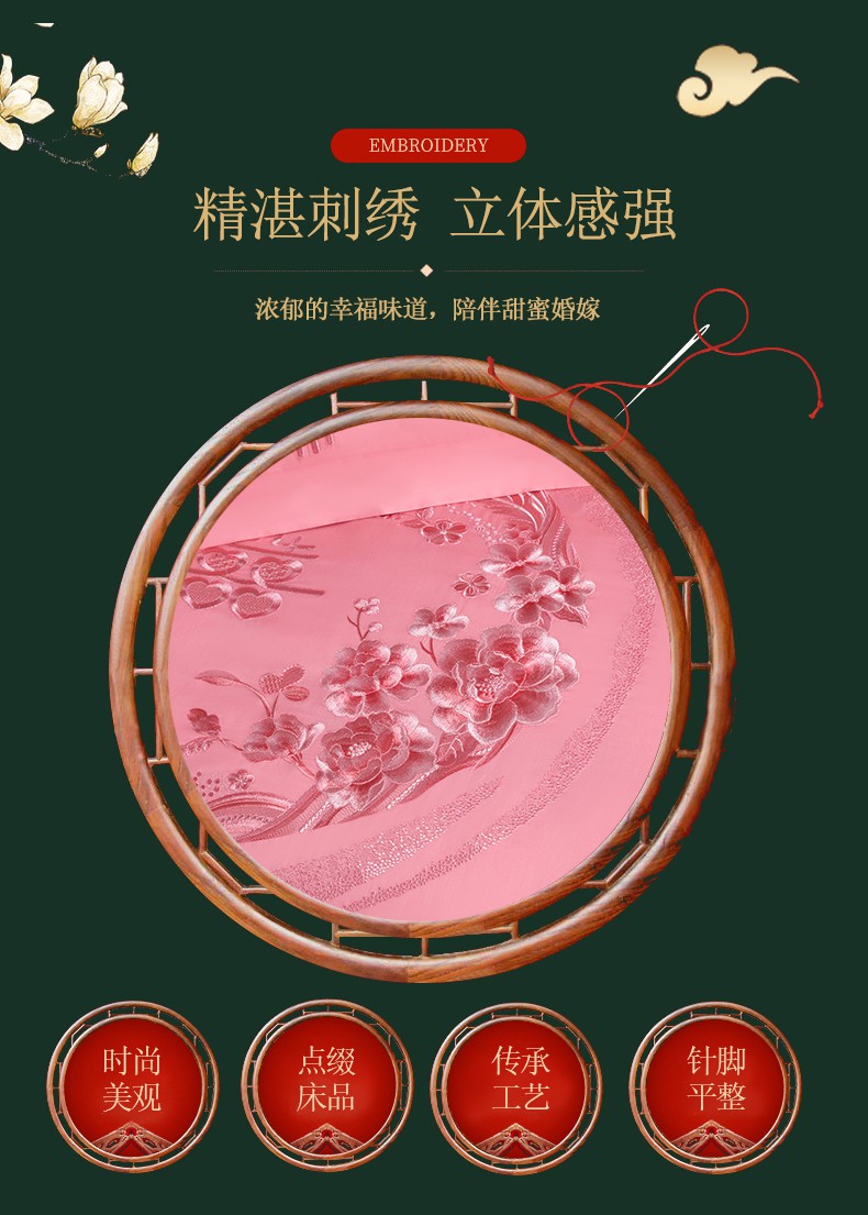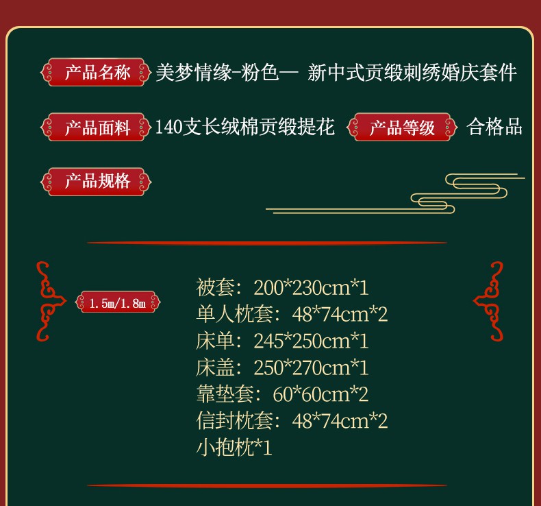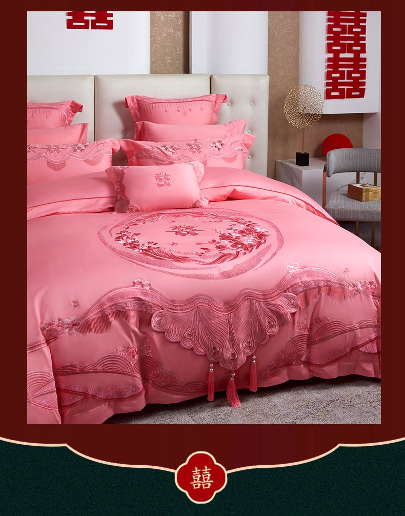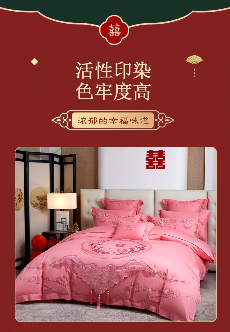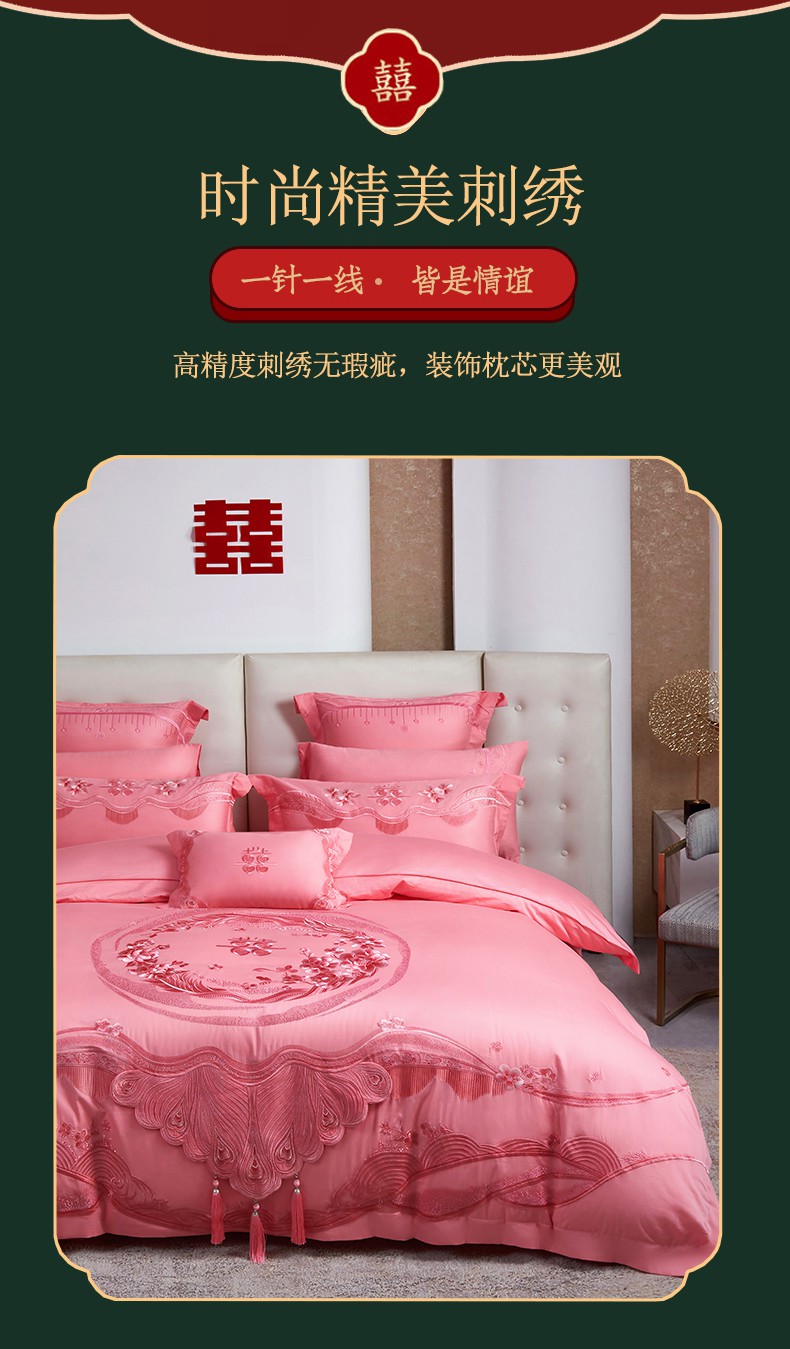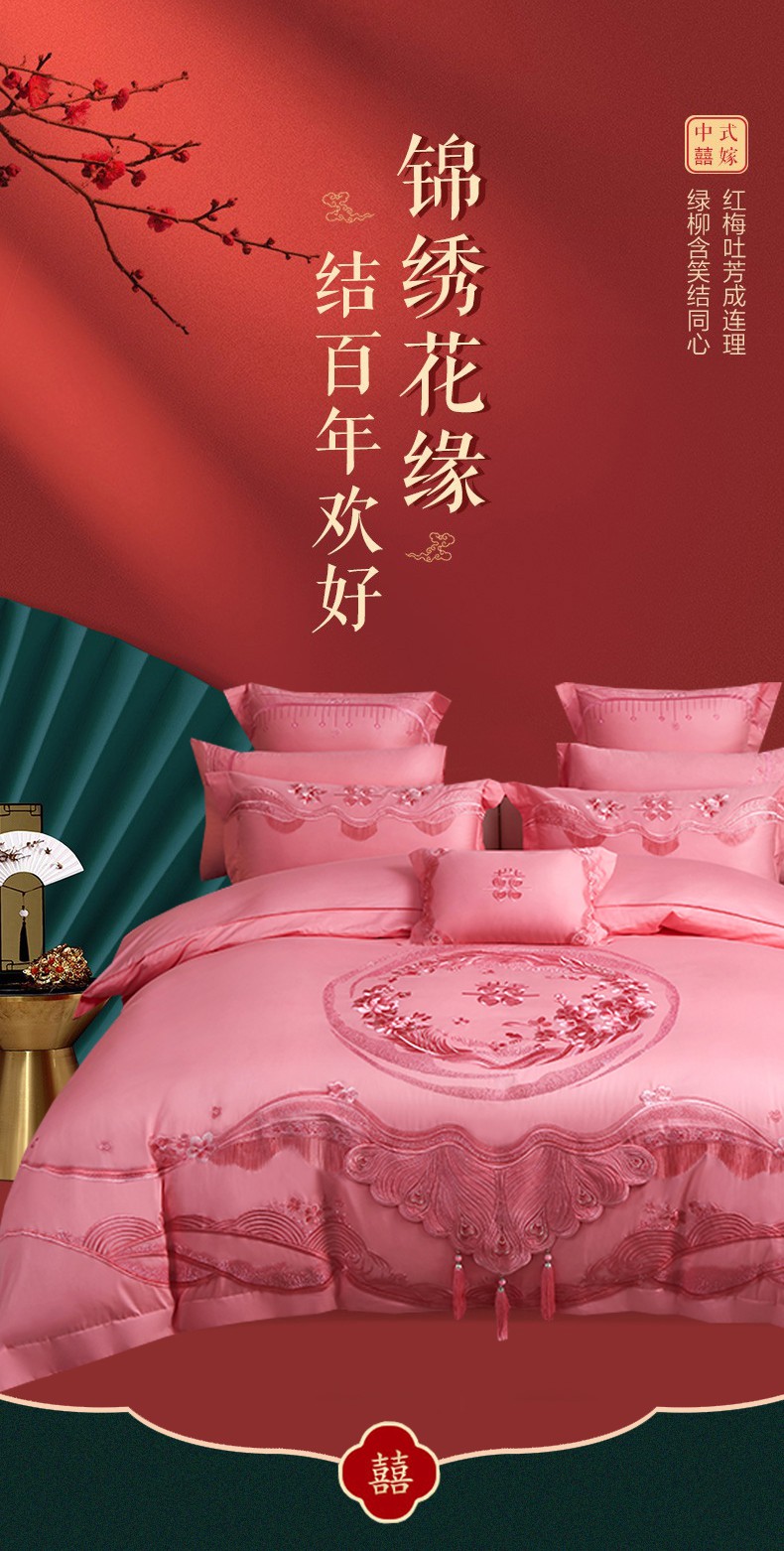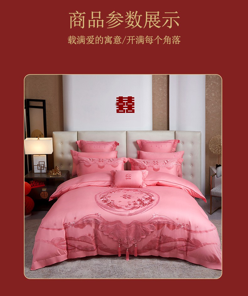 当前位置: 91家纺网 > 商品网购 > 床品套件 > 四件套 > 婚庆四件套 > 美娘阁 2025新款长绒棉贡缎提花款新中式古典韵味精美刺绣粉色系婚庆四件套多件套 美梦情缘 粉色