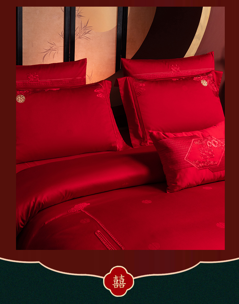 当前位置: 91家纺网 > 商品网购 > 床品套件 > 四件套 > 婚庆四件套 > 美娘阁 2025新款A版长绒棉提花B版长绒棉刺绣婚庆多件套喜事连连